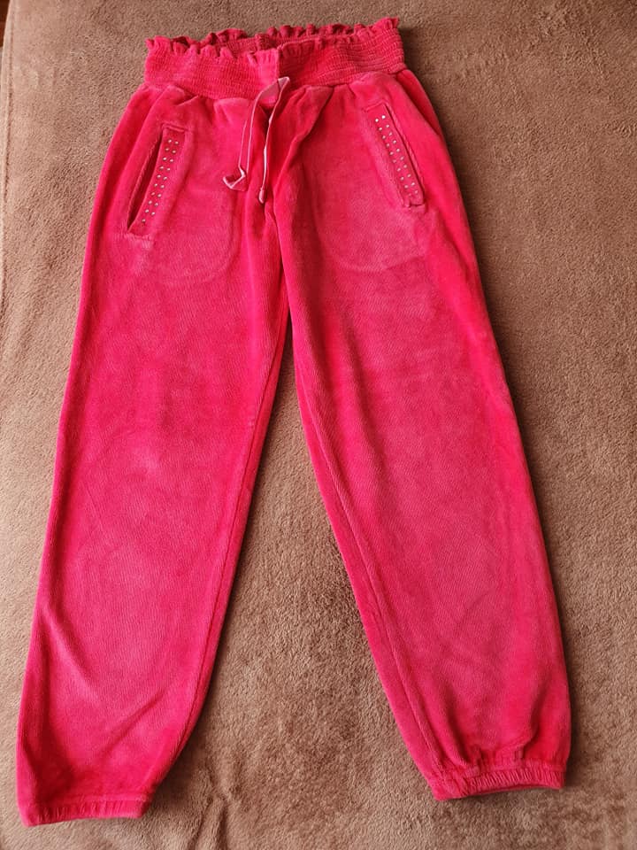 Predávam zamatové teplákové nohavice vo veľk.č.110, ani raz neoblečené, sú bez akýchkoľvek poškodení, dier, či fľakov, stav ako nový.