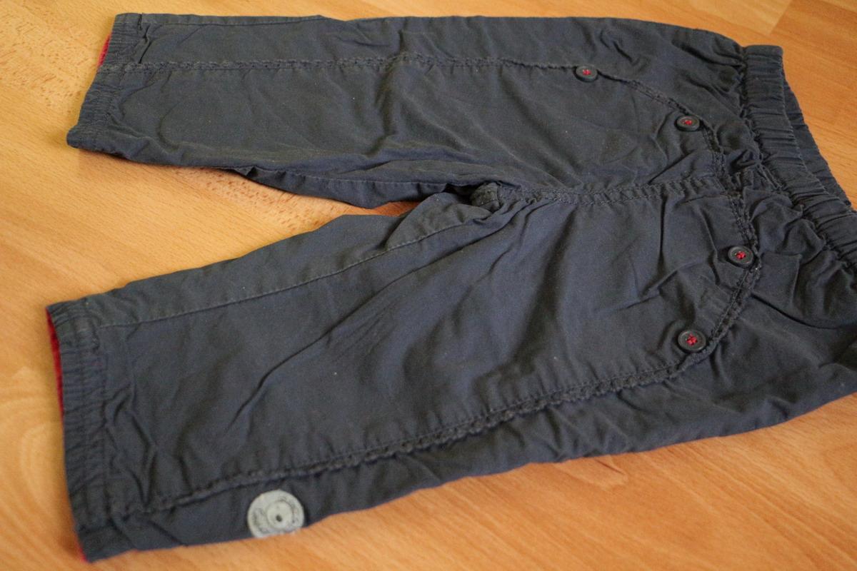 Podšité nohavice na prechodné obdobie pre dievča, značka Cadet Rousselle (kúpené vo Švajčiarsku), veľkosť je uvedená 12 Mois (tipujem 80), pás je na gumičku, 100% bavlna