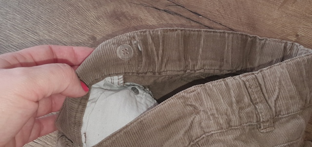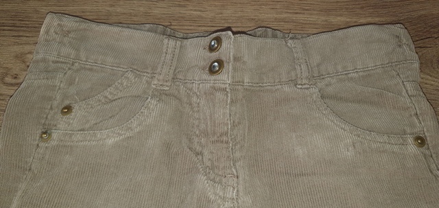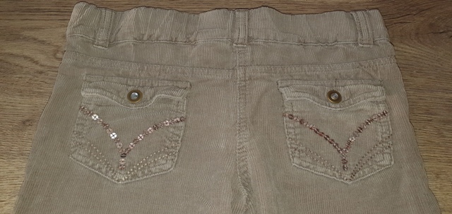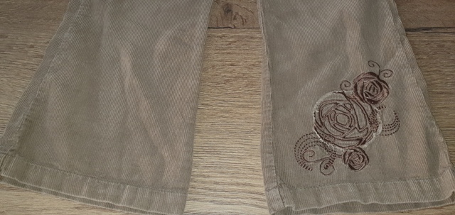 zapínanie na 2 gombíky, dolu na nohe výšivka, vo vnútri tunel na posuvnú gumu - nie je súčasťou, vzadu vrecká s flitrami + príklopky s gombíkom, perfektný stav