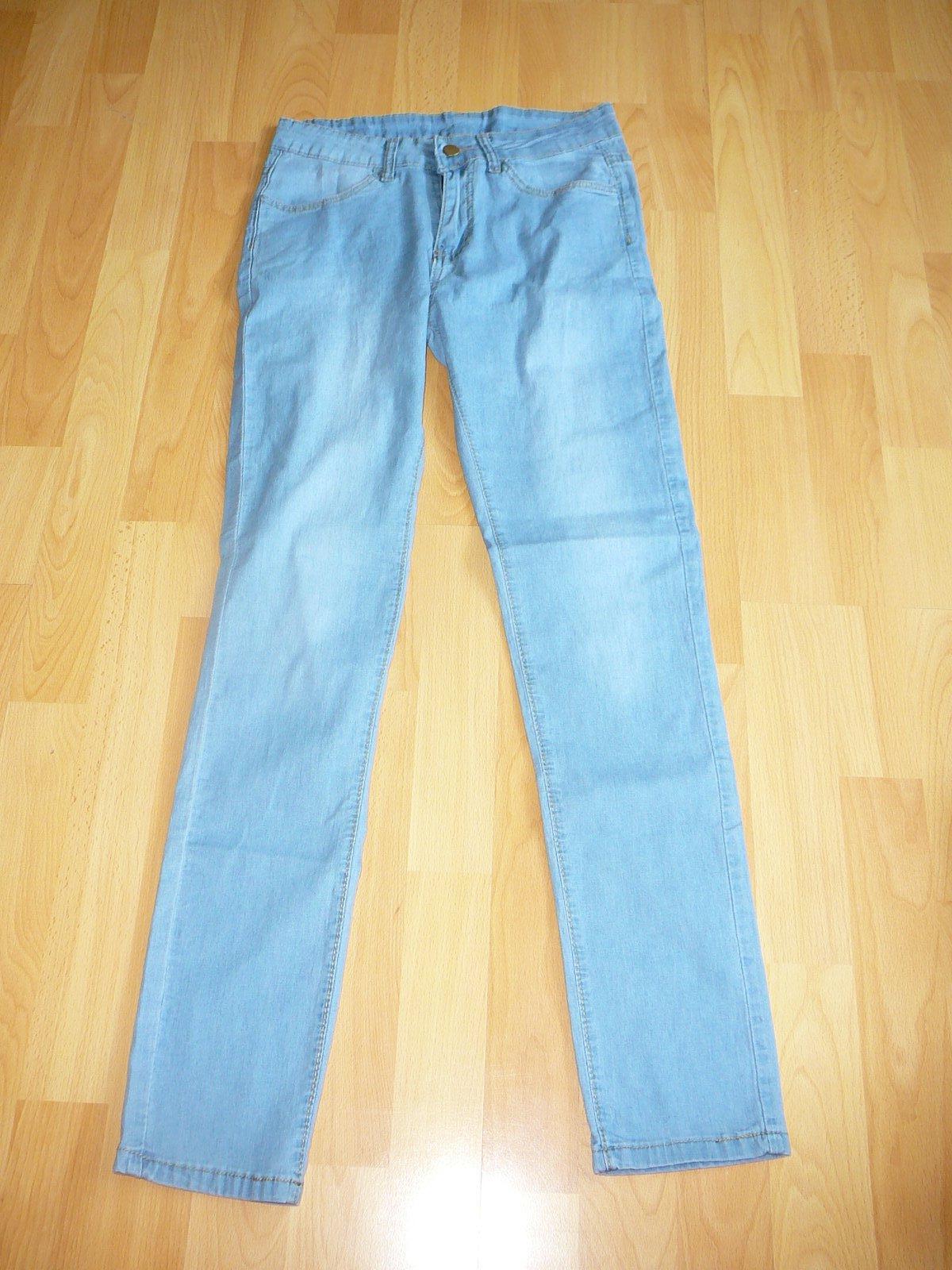 bledomodrej farby,bezny noseny stav bez vyblednutia,dier ci flakov,objednavane z internetu,nesadla velkost,pre silnejsie dievcata nie chudé, nesadla veľkosť