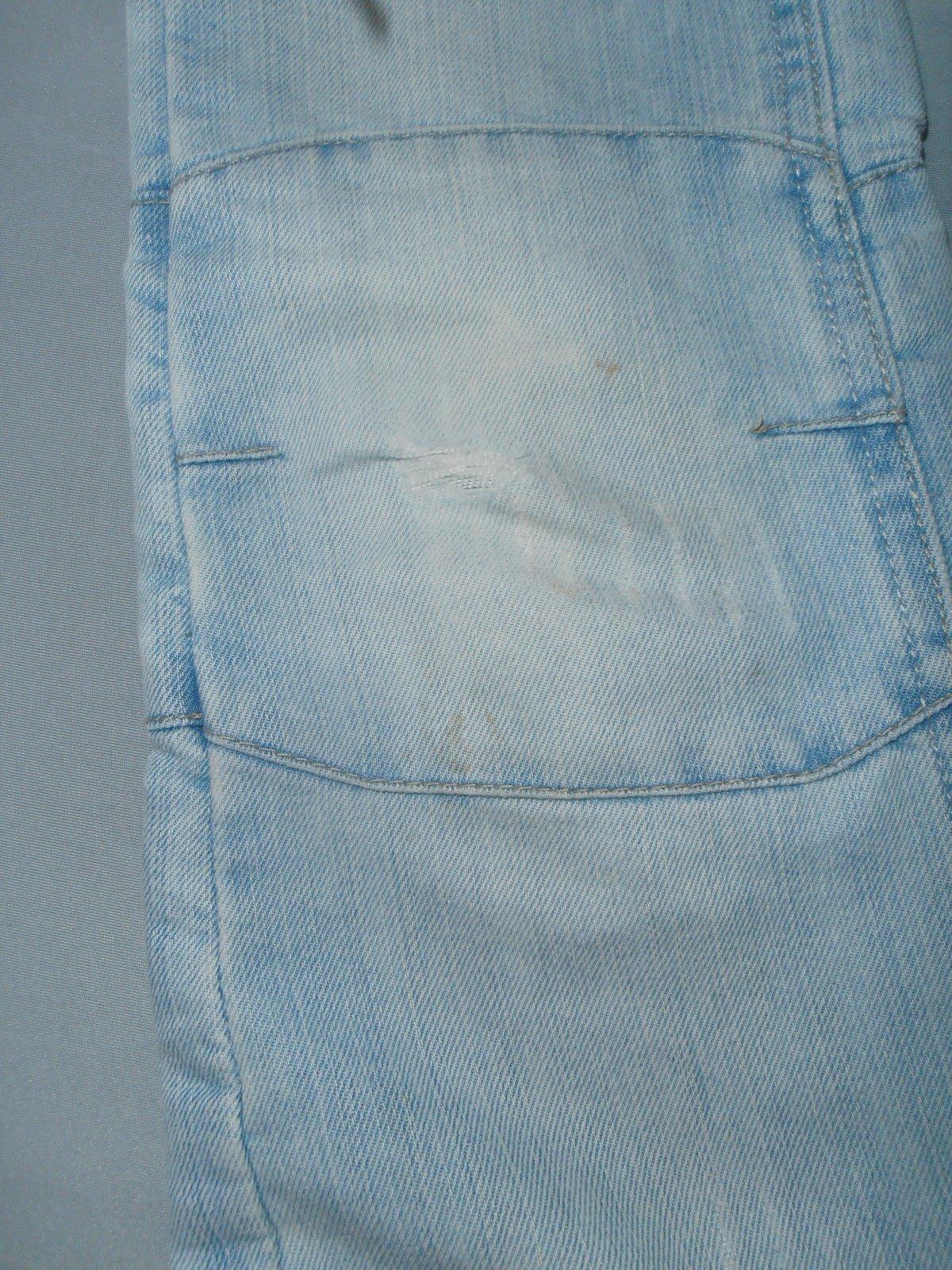 Predám chlapčenské bledomodré rifle zapínanie na zips a zasúvací gombík. V páse zvnútra je aj regulovateľná guma. Ma prednom vačku majú žltý fliačik, aj na kolene.