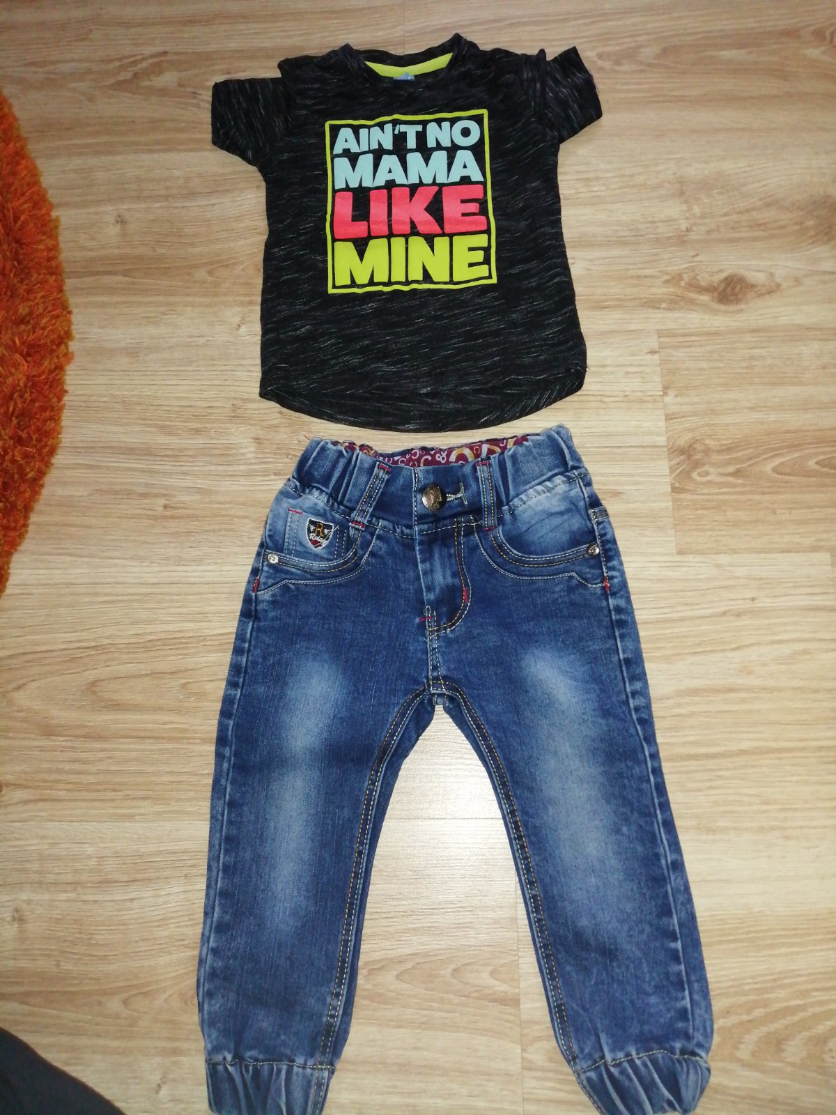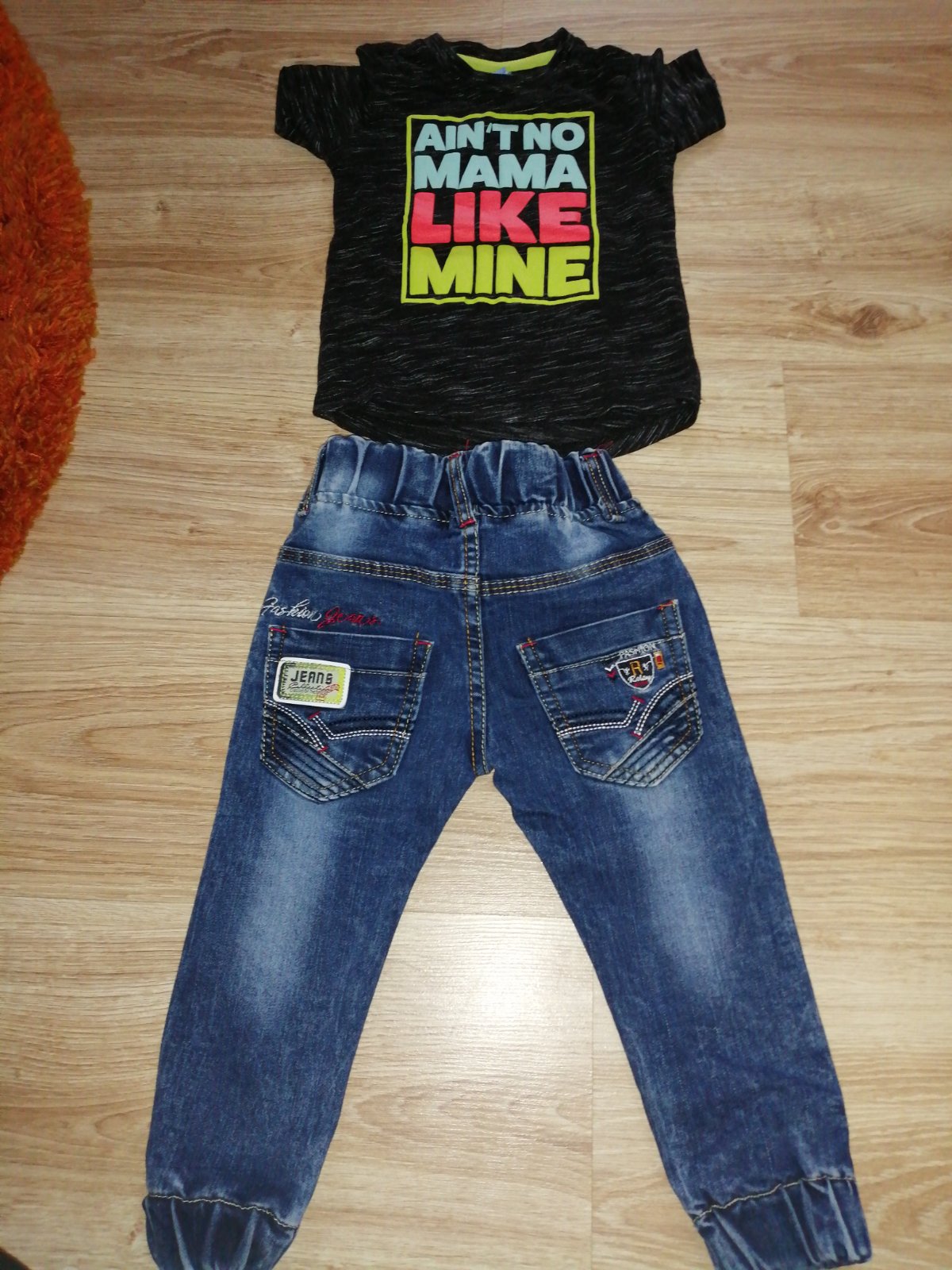 Predam jeany F&F tricko C&A super stav.Cena spolu bez postovneho.Trendy, malo nosene 9-12mesiacov