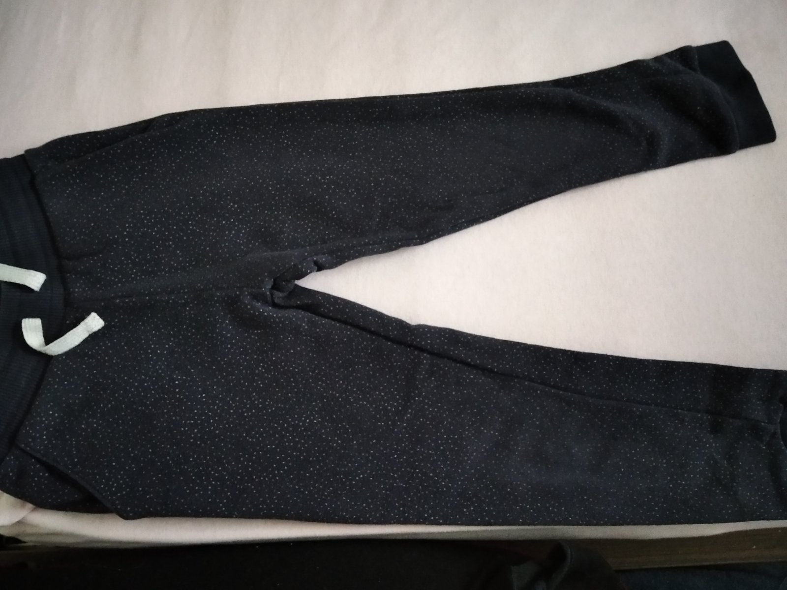 Teplaky ako nove par krat oblečene. Dlžka 65cm, širka v pase 27cm.