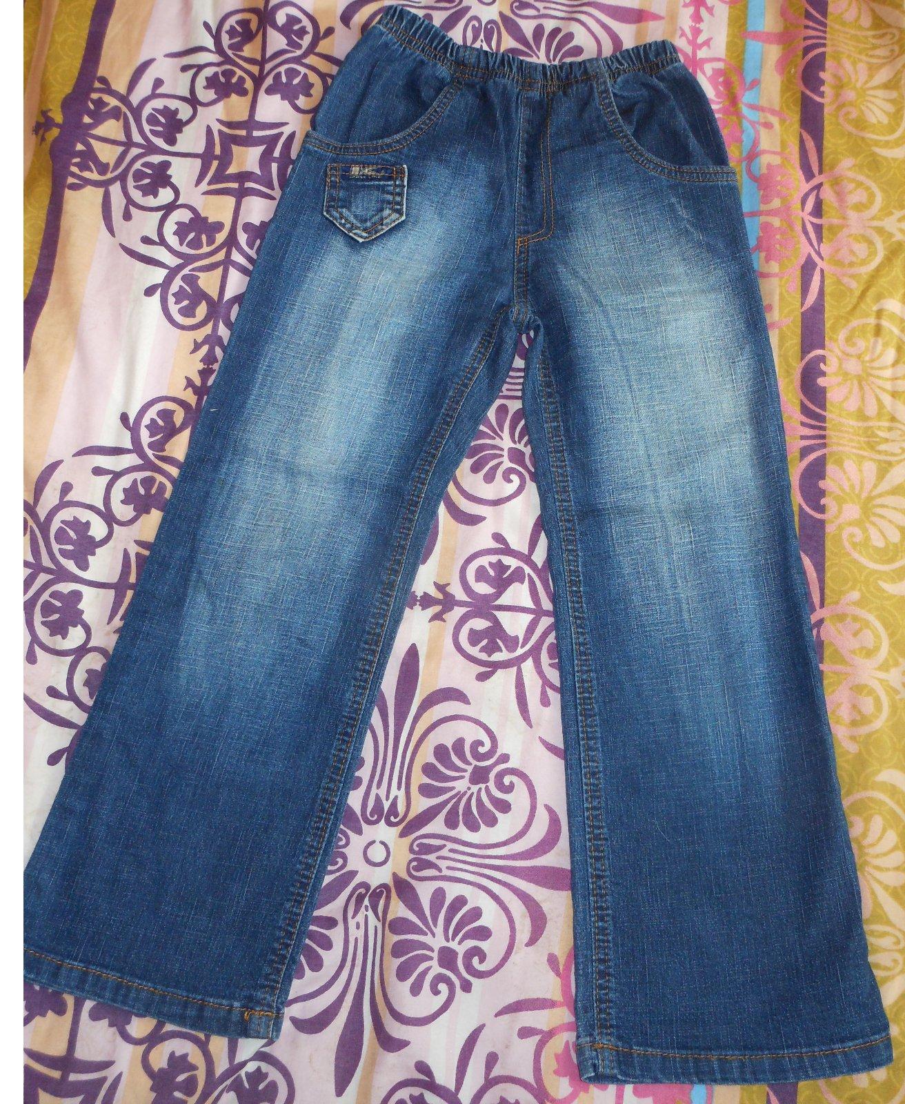 dievčenské nohavice z tenšej rifloviny. Dobrý nosený stav bez poškodení. Veľ. uvedená 110. Celková dĺžka 66cm, vnútorná 45cm, šírka pásu 22cm. Pás na gumu, prispôsobí sa