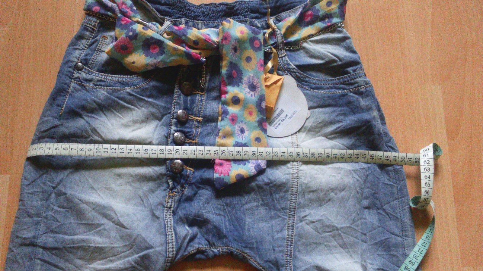 Dĺžka 91 cm, cez boky 50 cm x 2, pás 38-42 cm x 2, vzadu gumka taže sa poddá do 42x 2.