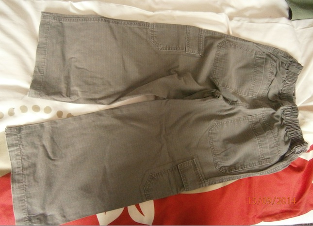 Predám tmavohnedé značkové nohavice veľkosti 116-122, pás na gumu, šírka v páse 2 x 28 cm v kľude, max. 2 x 33 cm, postranná dlžka 73 cm, dlžka od rozkroku 50 cm, šírka nohavice v stehne 25 cm, dole 22 cm, predný sed: 25 cm, zadný sed: 26 cm, spodky miestami zošlapané - vi'd detail, preto nižšia cena.
