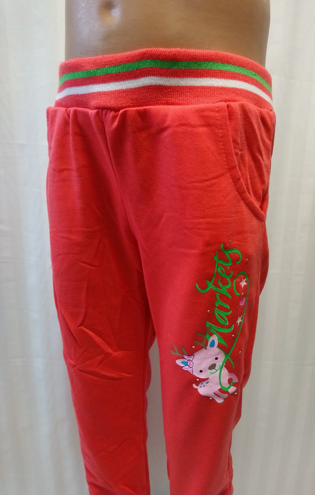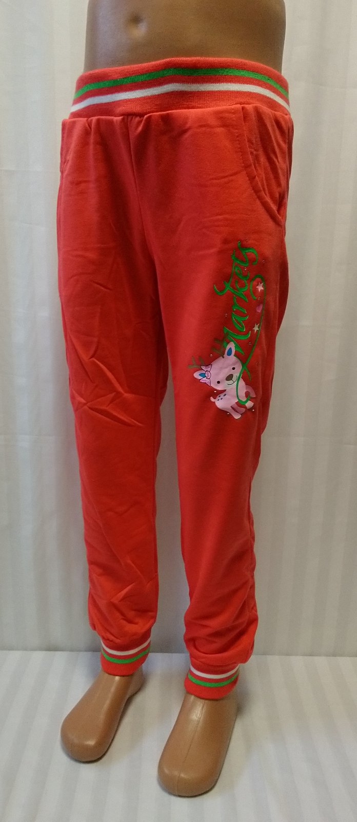 nové dievčenské svetlo červené tepláky v páse na gumu, nohavice zakončené patentom, vrecká na prednom diele, motív Markey, vhodné jar až jeseň,