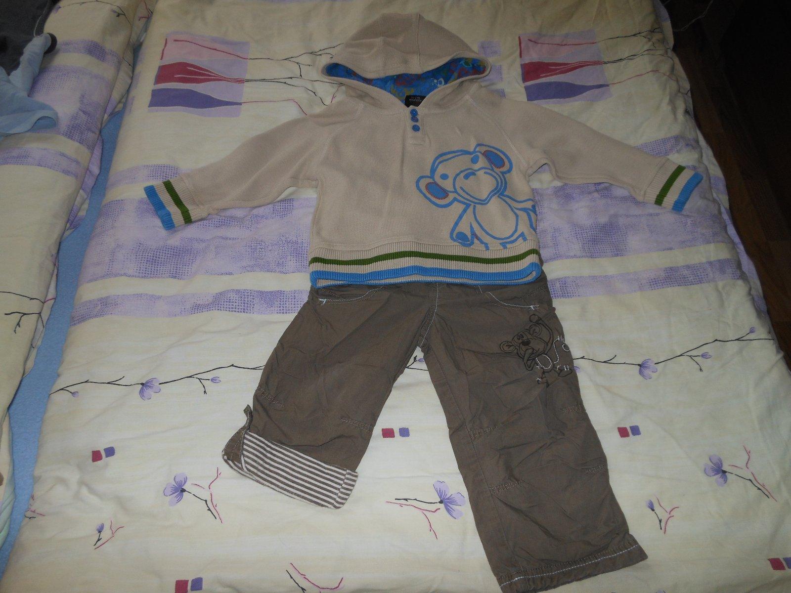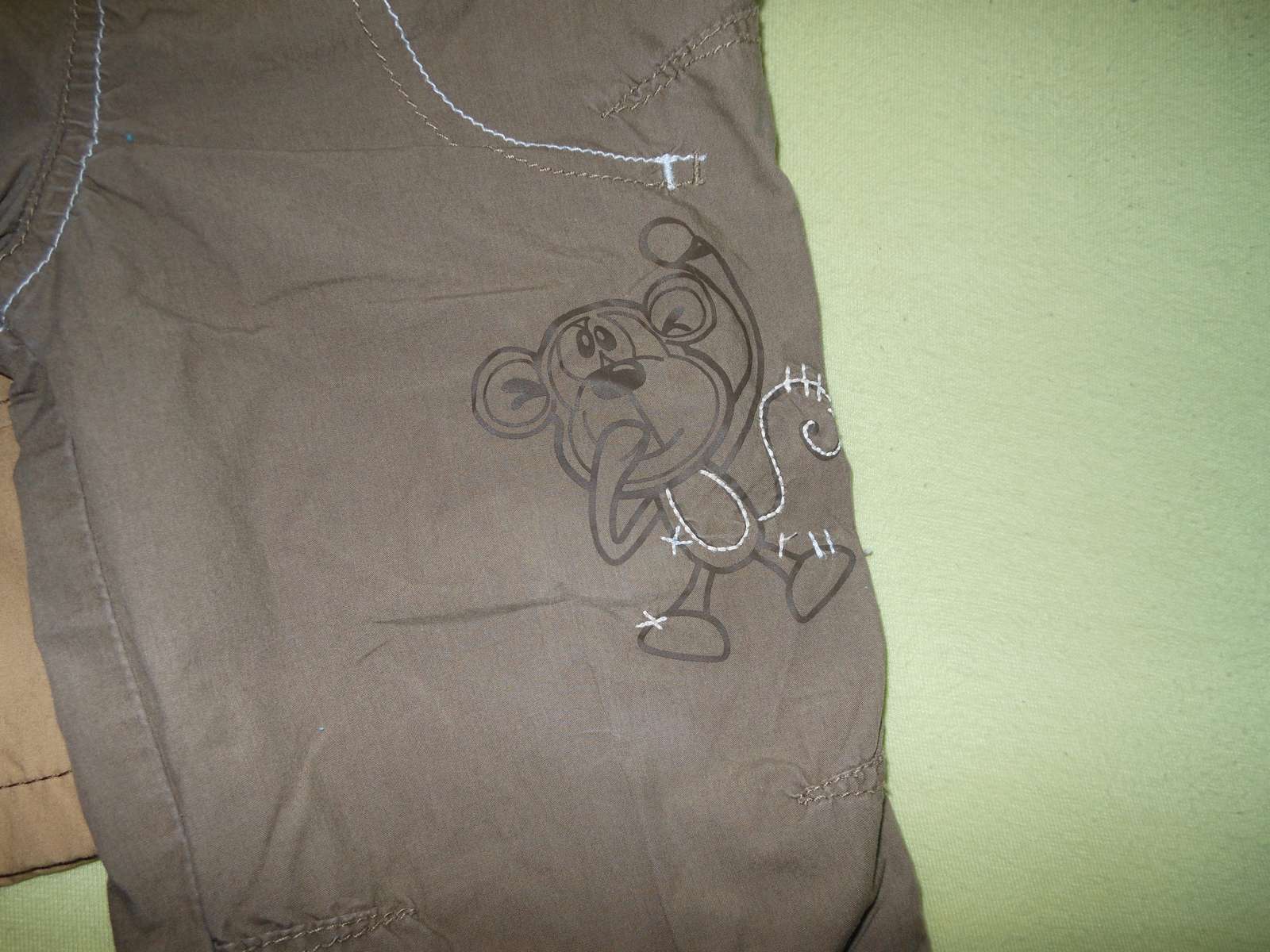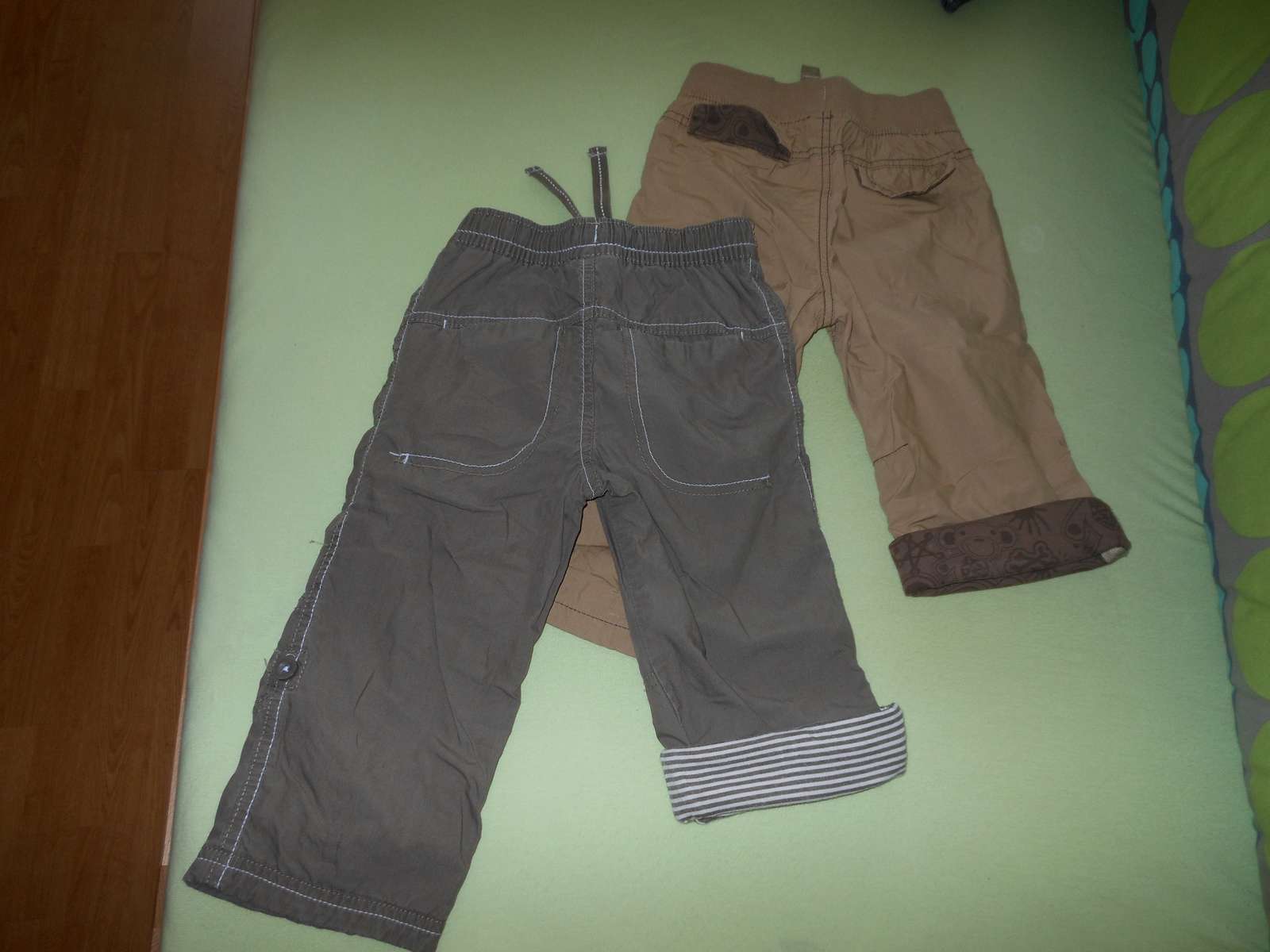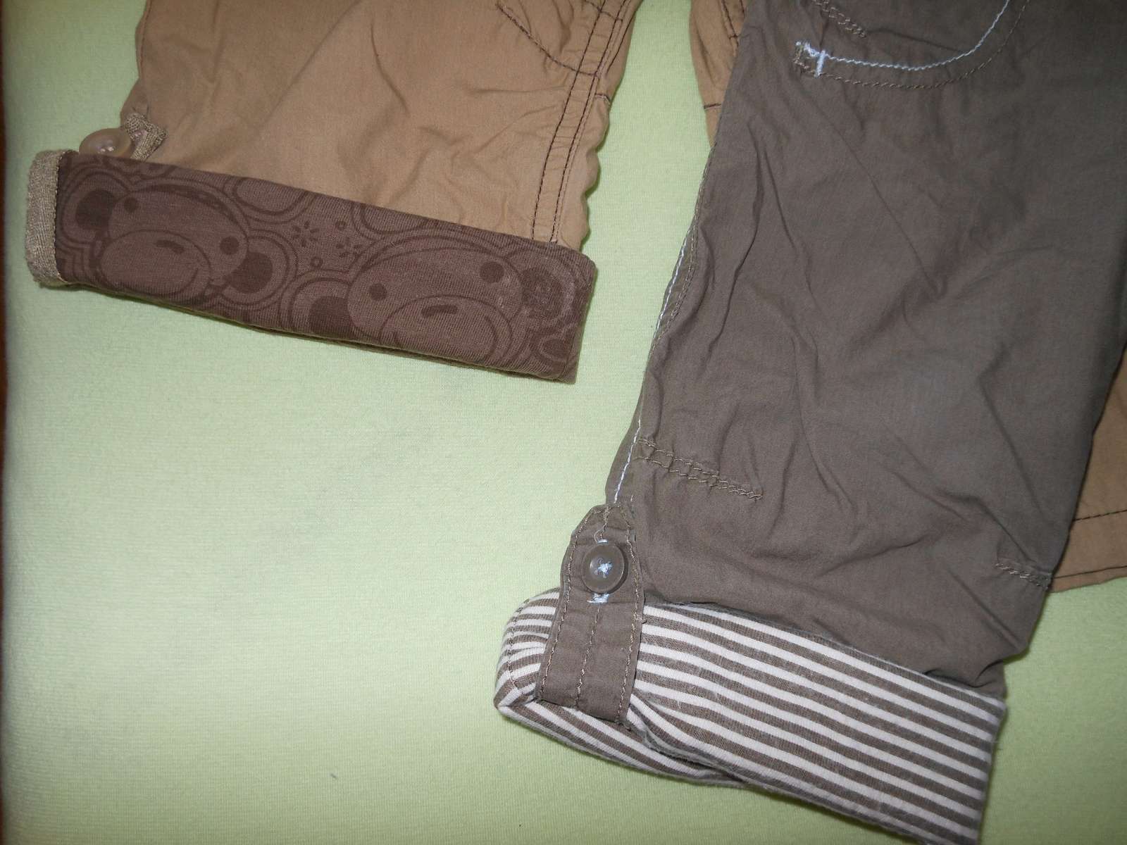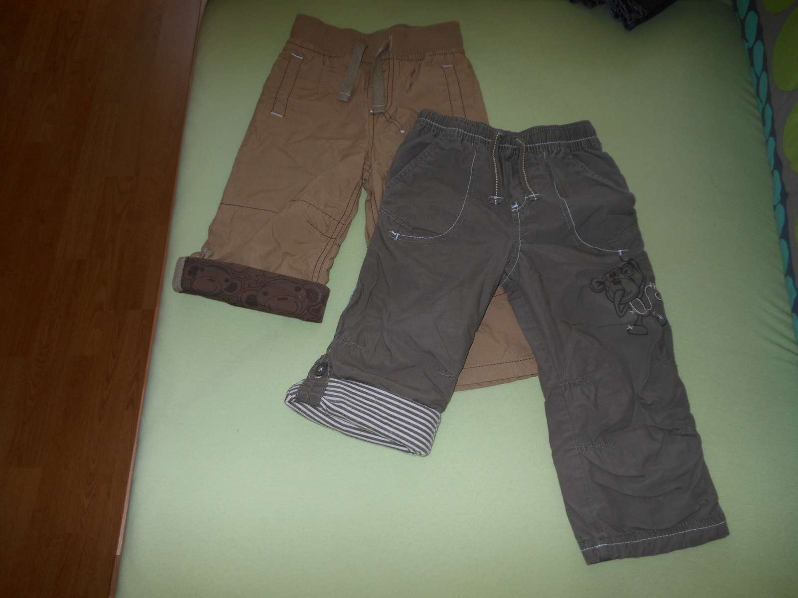 Predám krásne málo nosené podšité opičkové roll-up nohavice Next, veľkosť je 92, na 1a1/2 až 2 roky, ale ponosíte už skôr, už len tmavohnedé - sú podšité pásikavou látkou (sú na nej drobné žmolky) a na ľavej nohavici majú natlačenú a vyšitú opičku. Svetlejšie nohavice a mikinka predané.