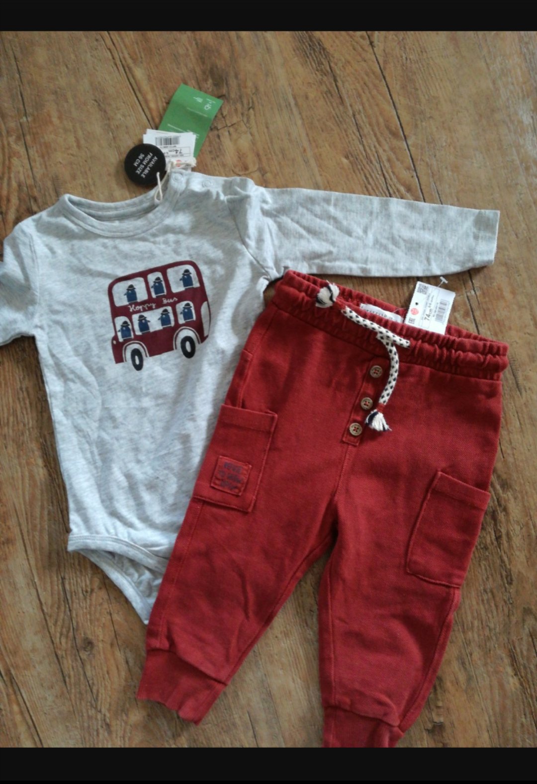 Nosené tepláky sivo veľmi dobrom stave. Bordové F&F velkost 74 1,50€ Tyrkysové Pepco. 86 1€ Spolu 2,50€