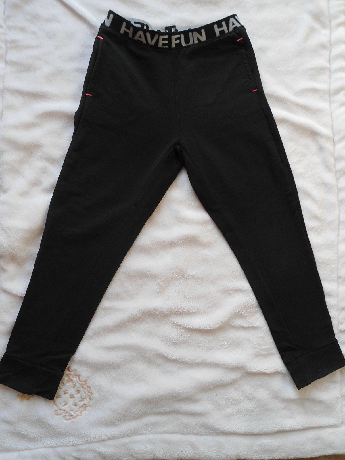 tepláky v top stave s vreckami po bokoch, dole na patenty . Tepláky sa ľahko obliekajú nakoľko majú širší pás na gumku s nápisom