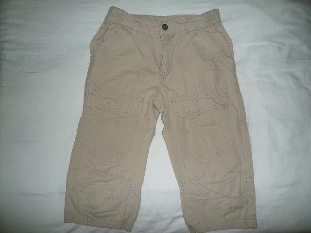 3/4 plátené nohavice. Veľmi pekné a zachovalé. Nosené len našim Tomáško aj to pomenej. Po bokoch v páse guma. Vrelo odporúčam.