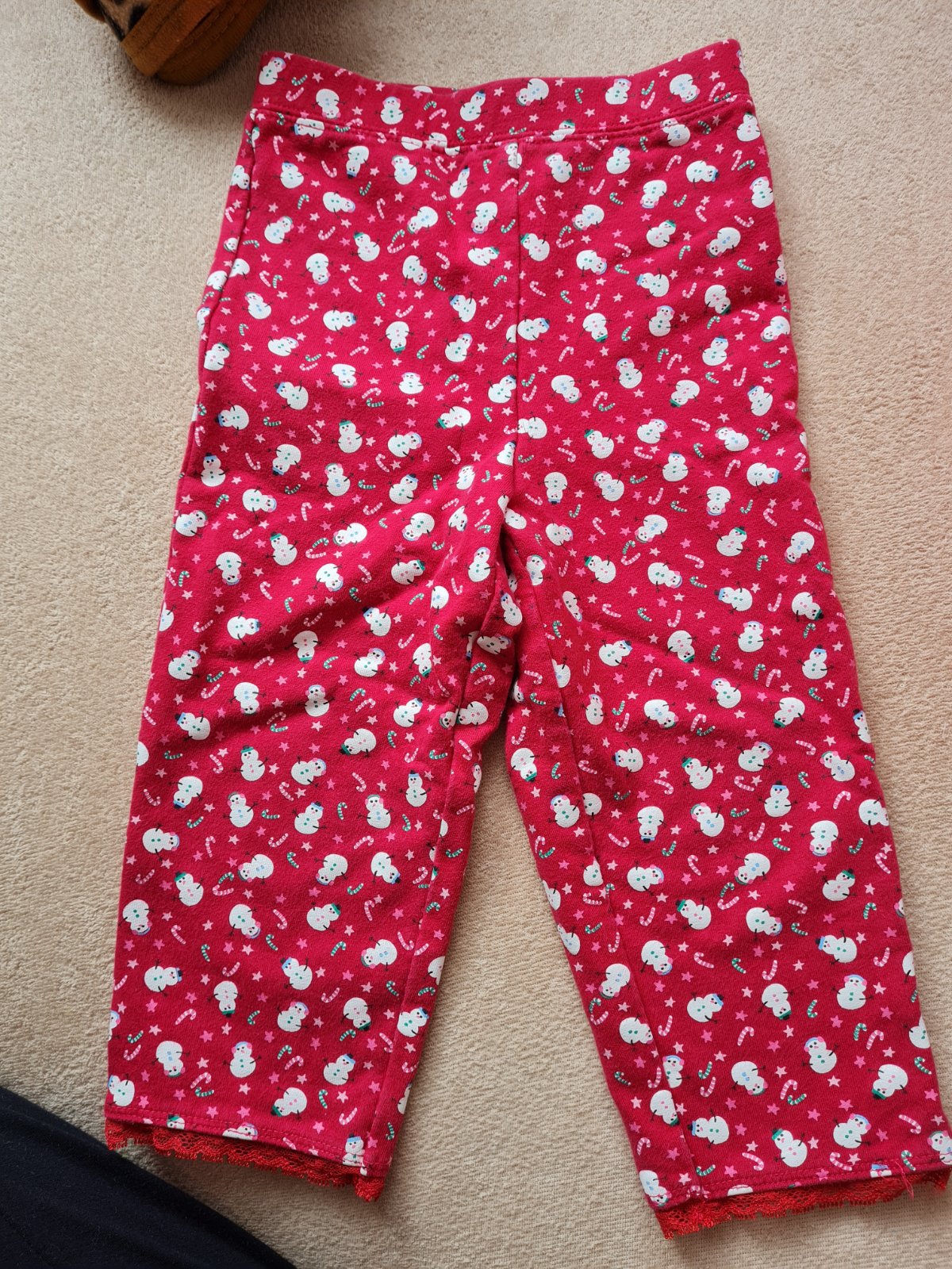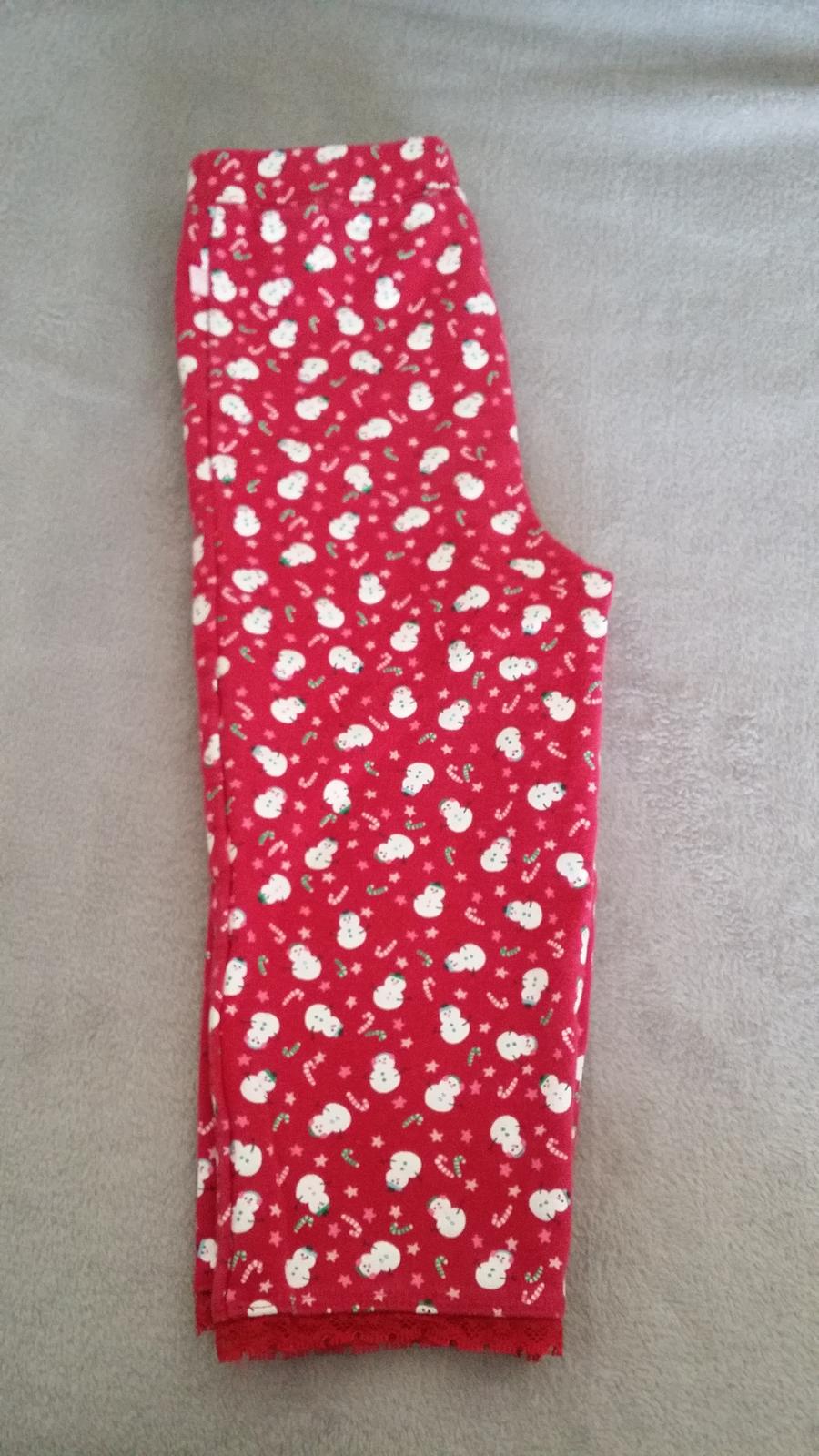 Hrubšie teplaky alebo legíny s drobnými snehuliakmi. Nenosili sme, len som ich oprala, nesadla nám veľkosť. Vhodné ako domáce oblečenie. Ak treba premeriam.