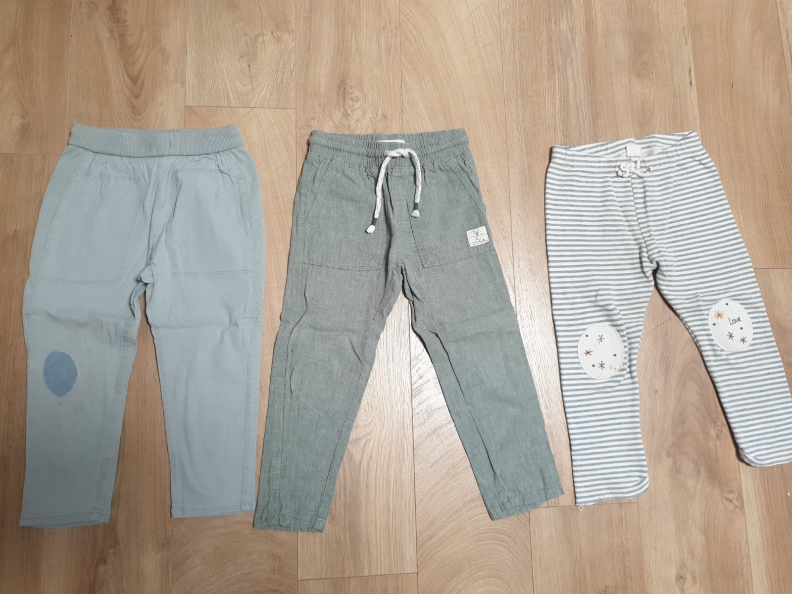 1x pasikave nohavice z frote materialu, velmi prijemne na nosenie so zaplatami na kolenach