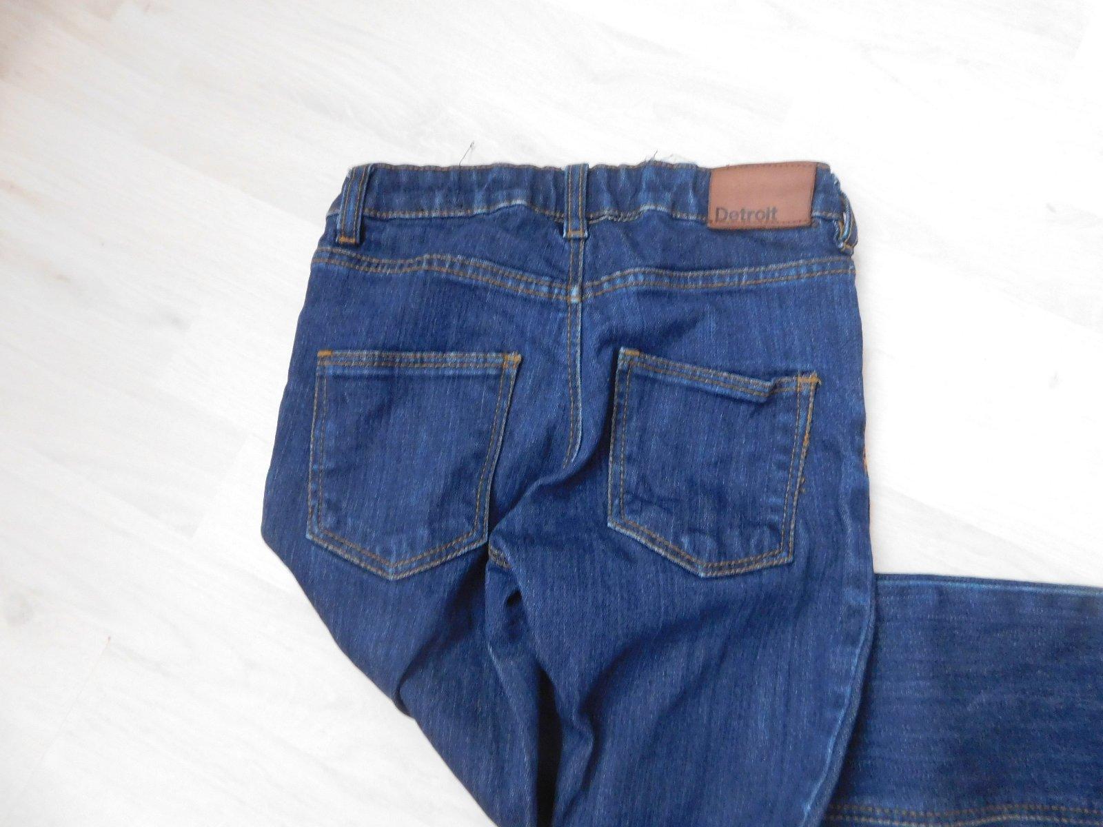 Značka: F&F Veľkosť: 122 (6-7 rokov) - aj tak presne sedia Farba: modrá Materiál: riflovina s 2 % elastanom Nie sú tvrdé ako klasická riflovina, ale materiál je príjemne mäkký a elastický. Majú z v...