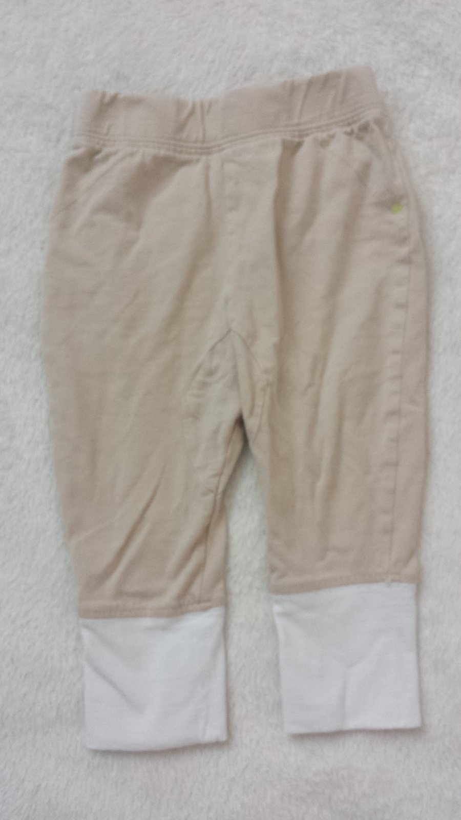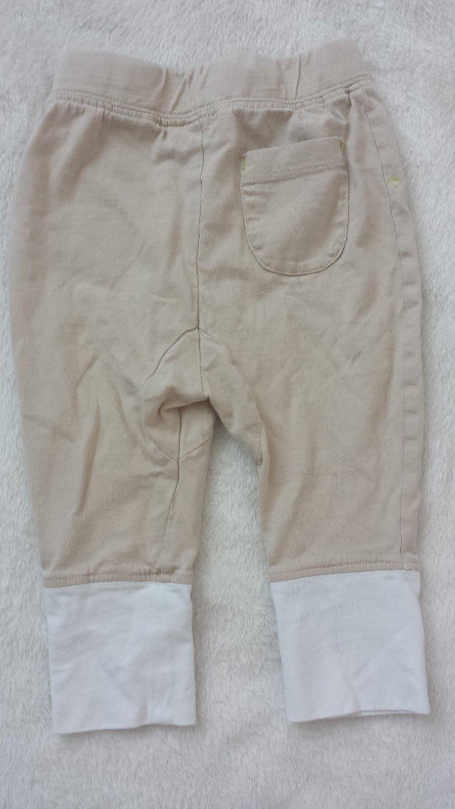 Na predaj pekne tepláky krémovej farby. Je to top stav. Majú aj vrecká. Pás má gumu v nenatiahnutom stave 34 CM x 2. Celková dĺžka je 94 CM.