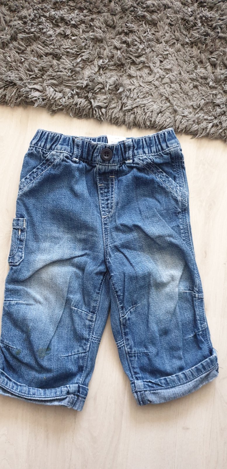 Chlapčenské slim rifličky zn. H&M, písaná veľkosť 74, 6-9 mesiacov, ale syn ich nosil ešte viac ako ročný. Vzadu je guma takže sú prispôsobivé.