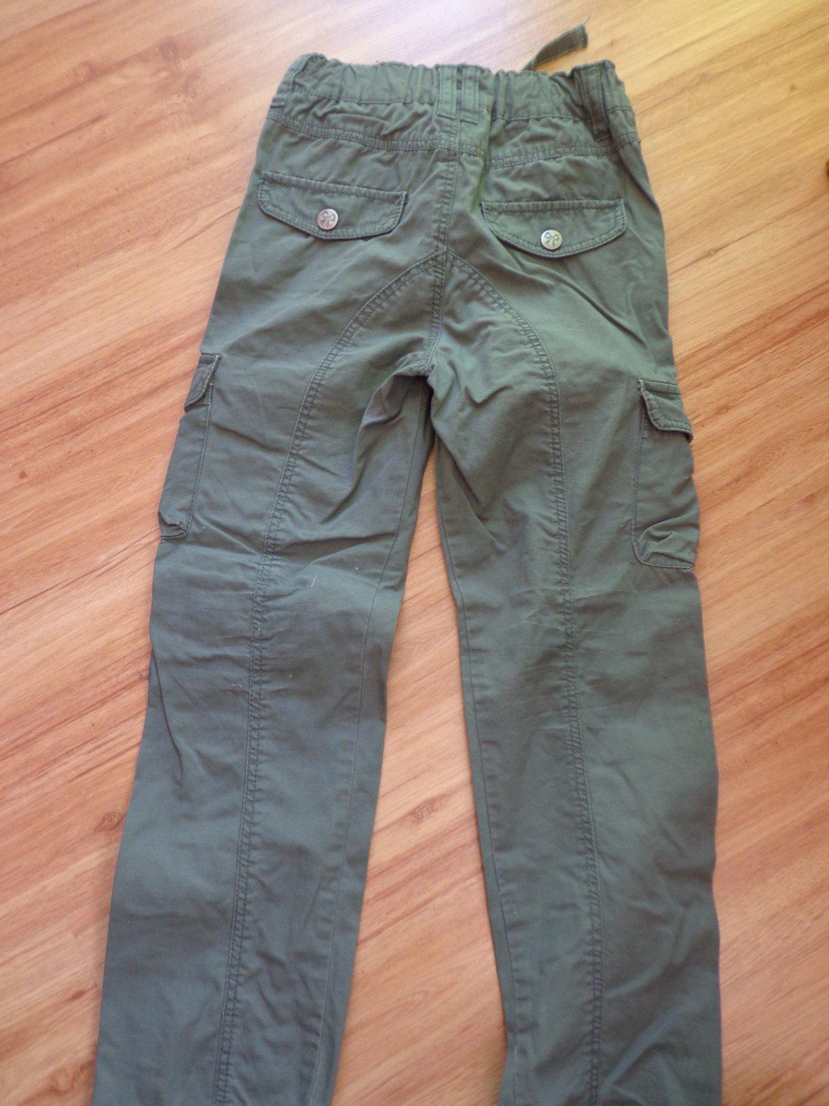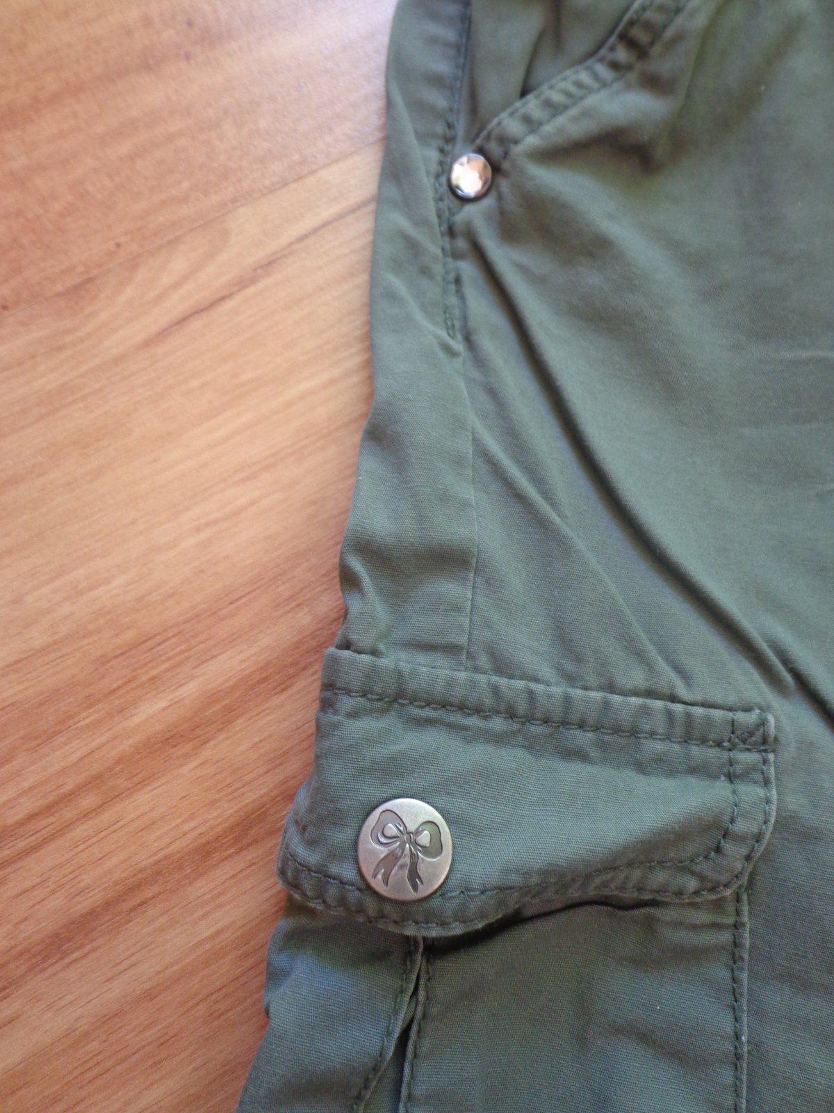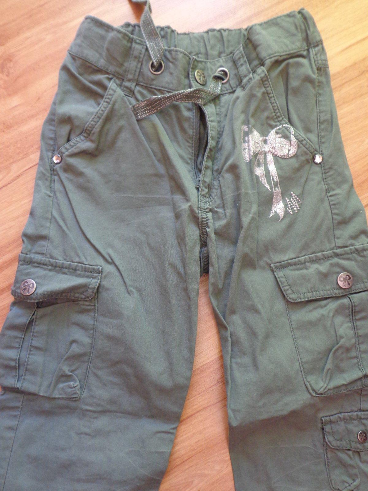 Nohavice, letné tenké, HM, 6-7 r, veľmi dobrý nosený stav, krásna trblietavá mašlička, cena: 5 Eur, sú super na leto.