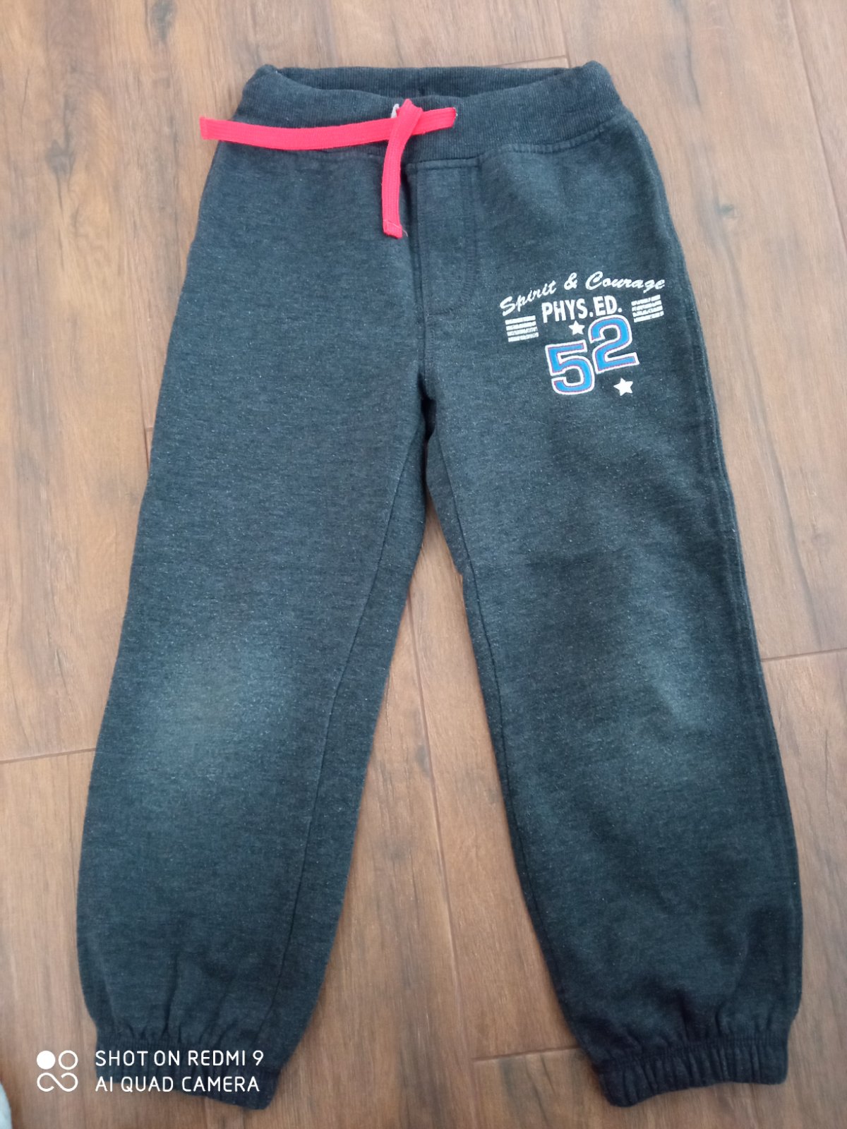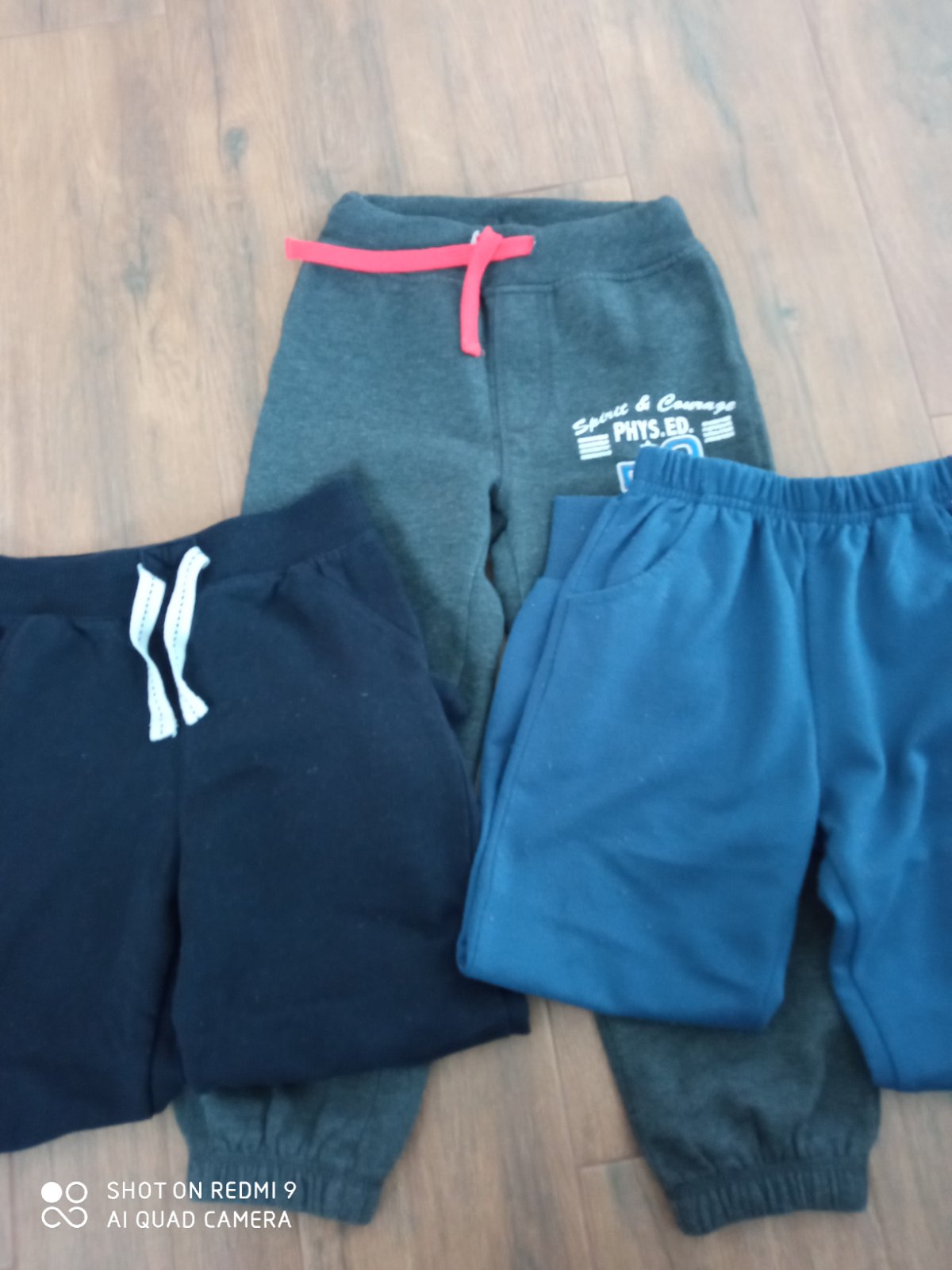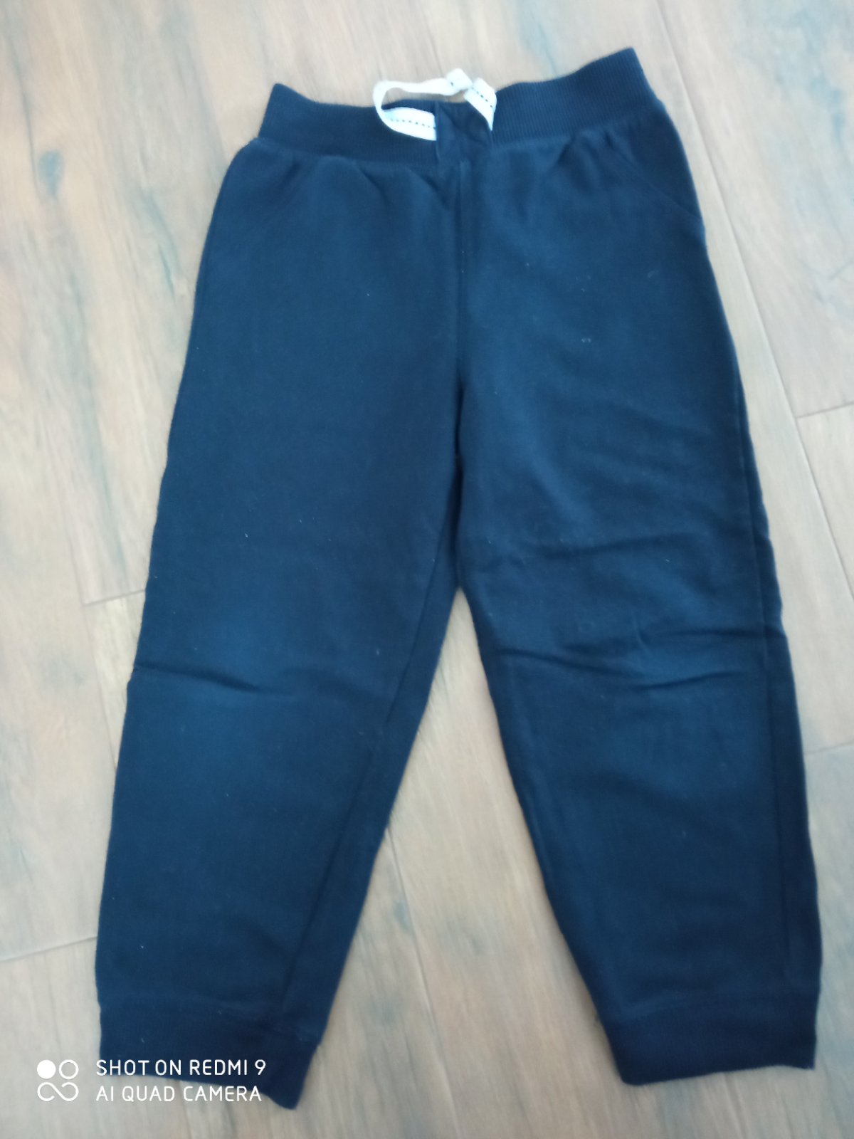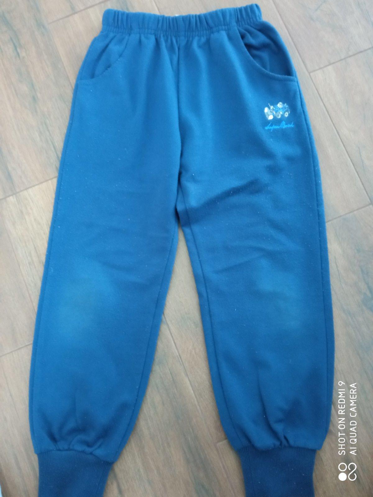Nasene tepláky, majú žmolky, šuchnuté kolená, no žiadne diery. Tmavomodré majú veľkosť 116