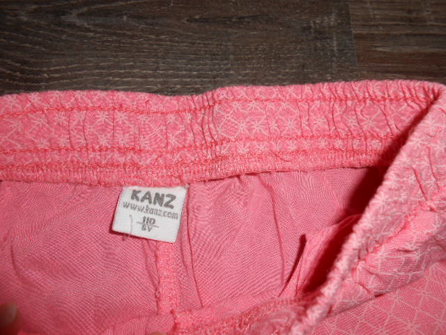 8. KANZ lahké letné dievčenské nohavice vo velkosti 110, v super stave, dlžka je 66cm, širka v páse je od 23x2cm do 34x2cm, v páse je gumka a da sa stiahnut aj šnurkou ....po bokoch vrecka