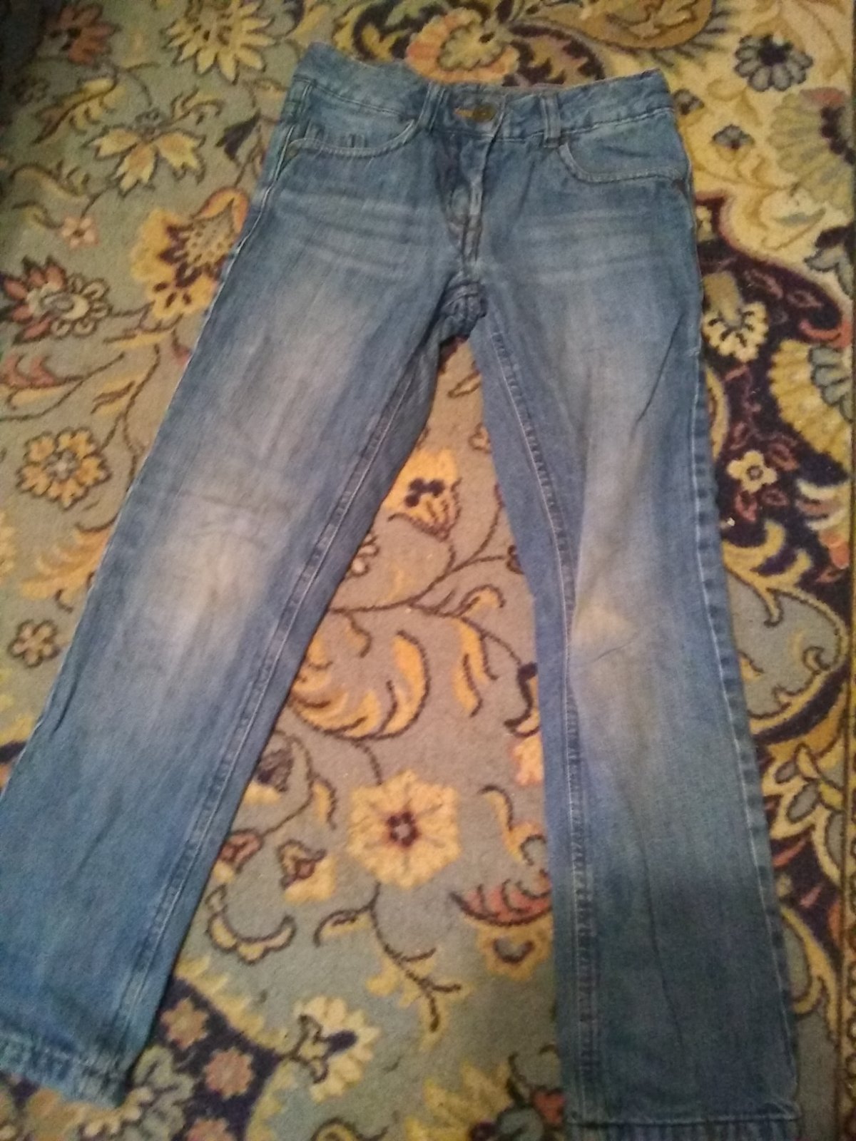 Chlapčenské rifle velk. 140, mali sme v nich natiahnutú gumu v páse, zostali tam dierky, inak v poriadku , viď foto