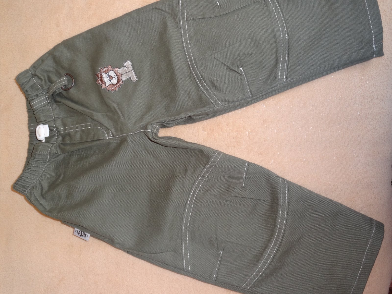 Ponukam na predaj olivove nohavice,so zaujimavym stepovanim na kolenach,pas na stahovanie-snurka,znacka Lasie, v TOP stave.
