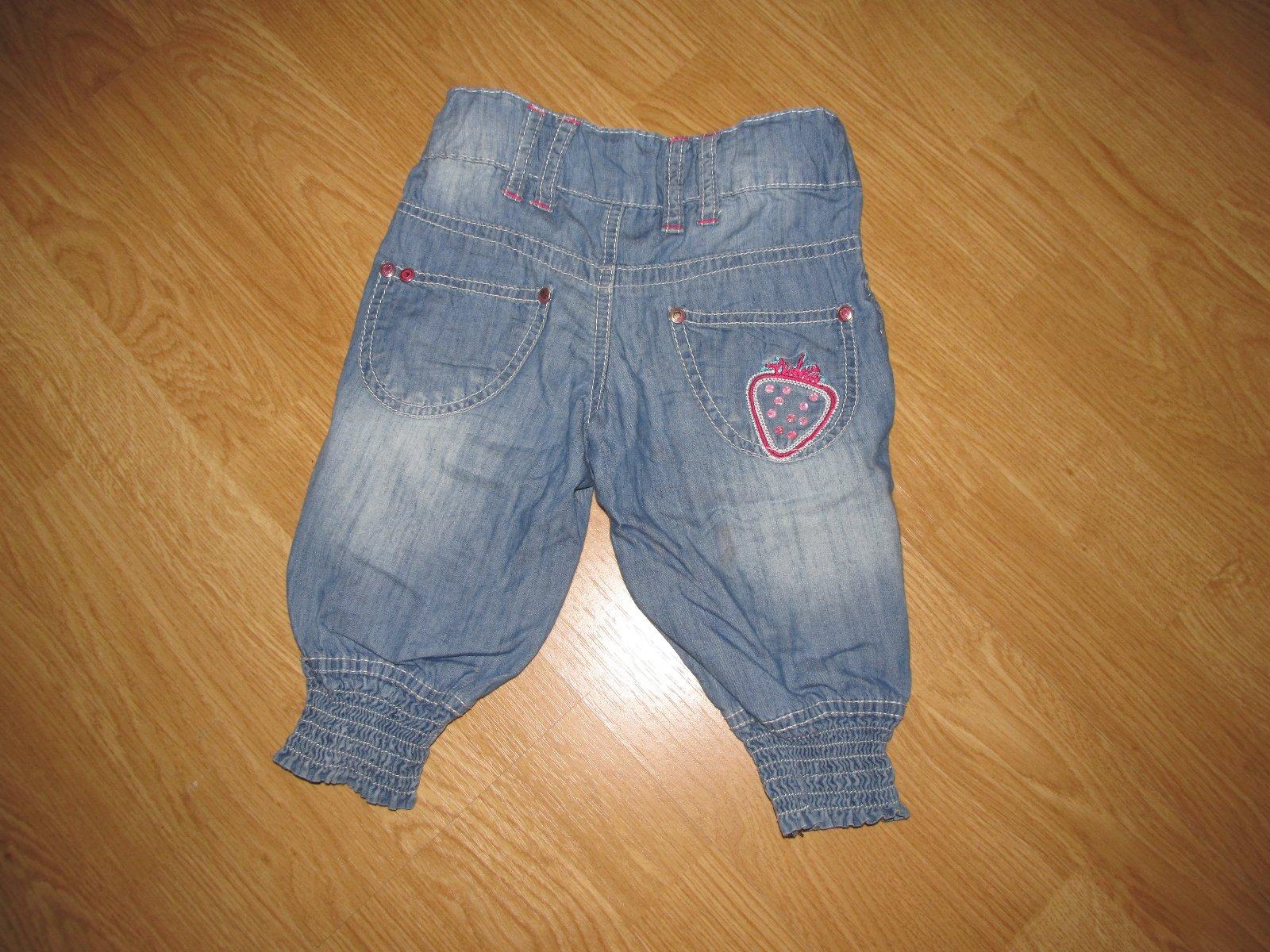 Predám pekné moderné riflíky,značka Dopodopo Girls, v páse regulovanie šírky, patent + zipsík, funkčné vrecká, dole na spodku nohavice je gumka, má praktické využitie, zo začiatku rifle môžu byť ako klasické, neskôr ako 3/4.Rifle sú po jednom dieťatku, stáli v Takku 16 eur.