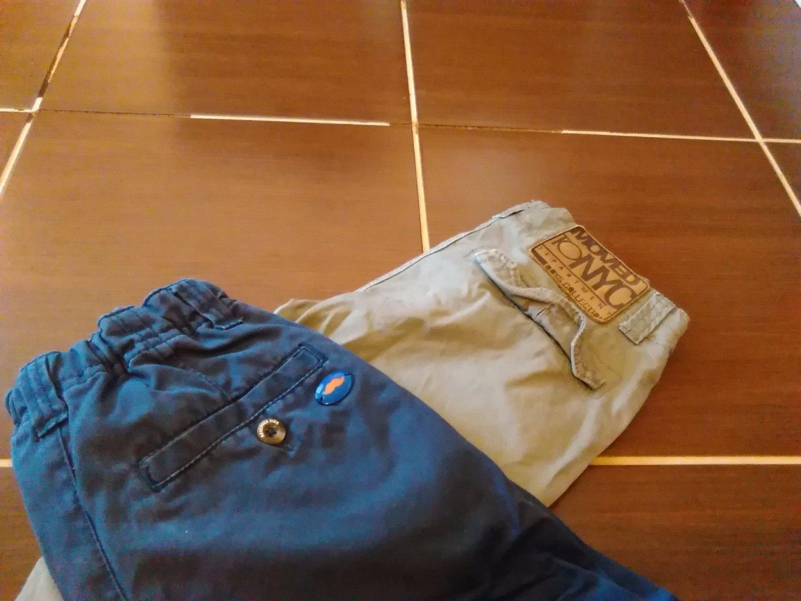na modrych mozno trochu bledsia farba na okrajovych castiach..vrecka, pas, inak pekne, pas nastavitelny.nosili sme chvilu do skoly.cena spolu
