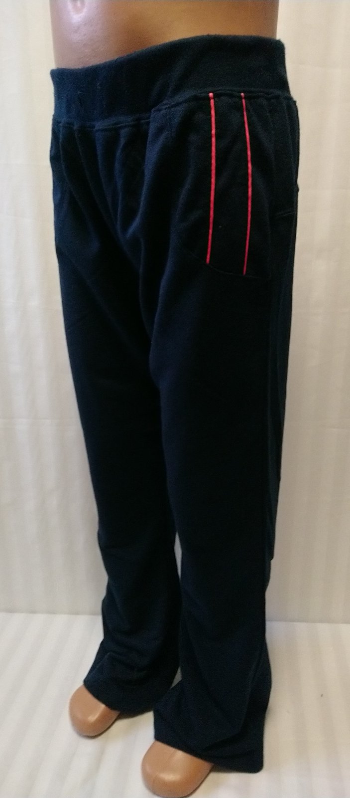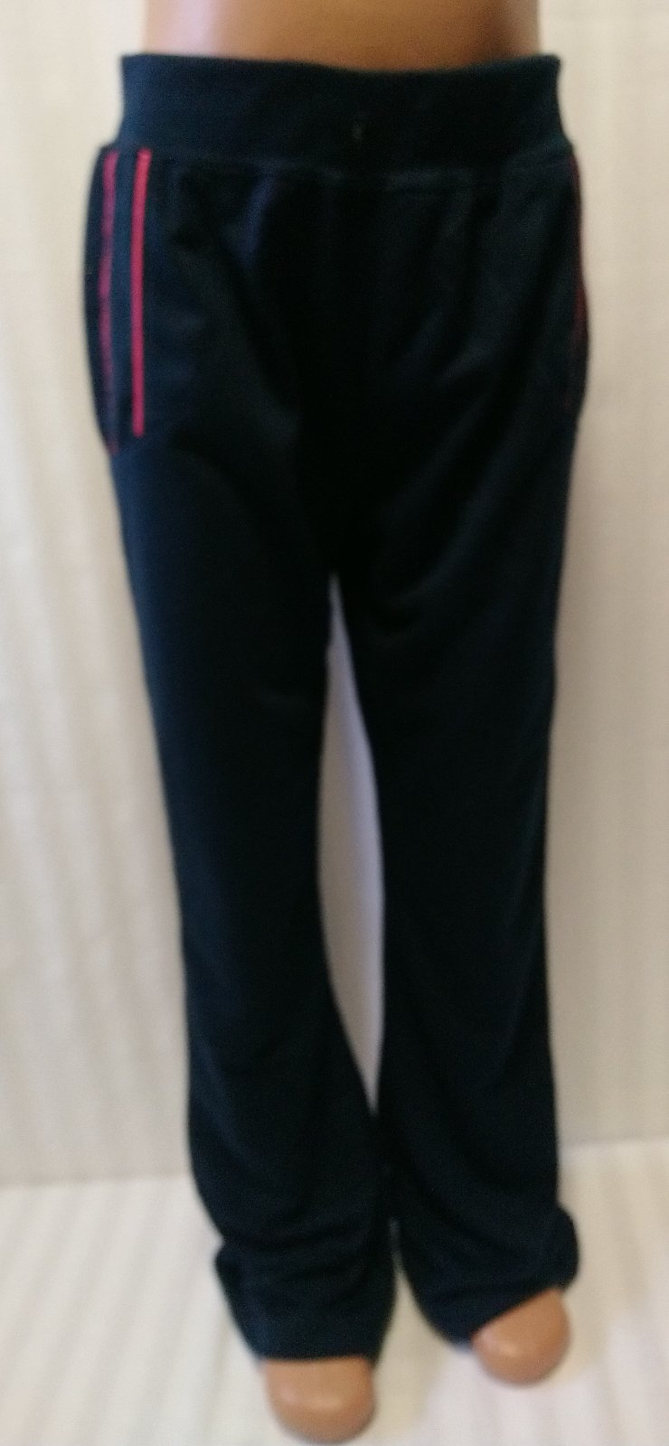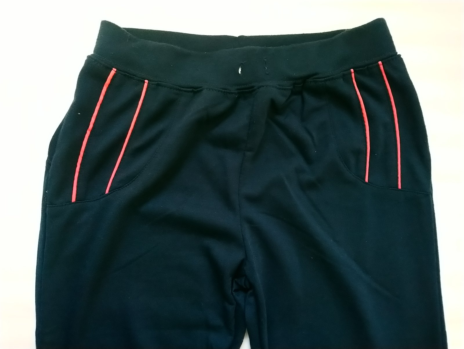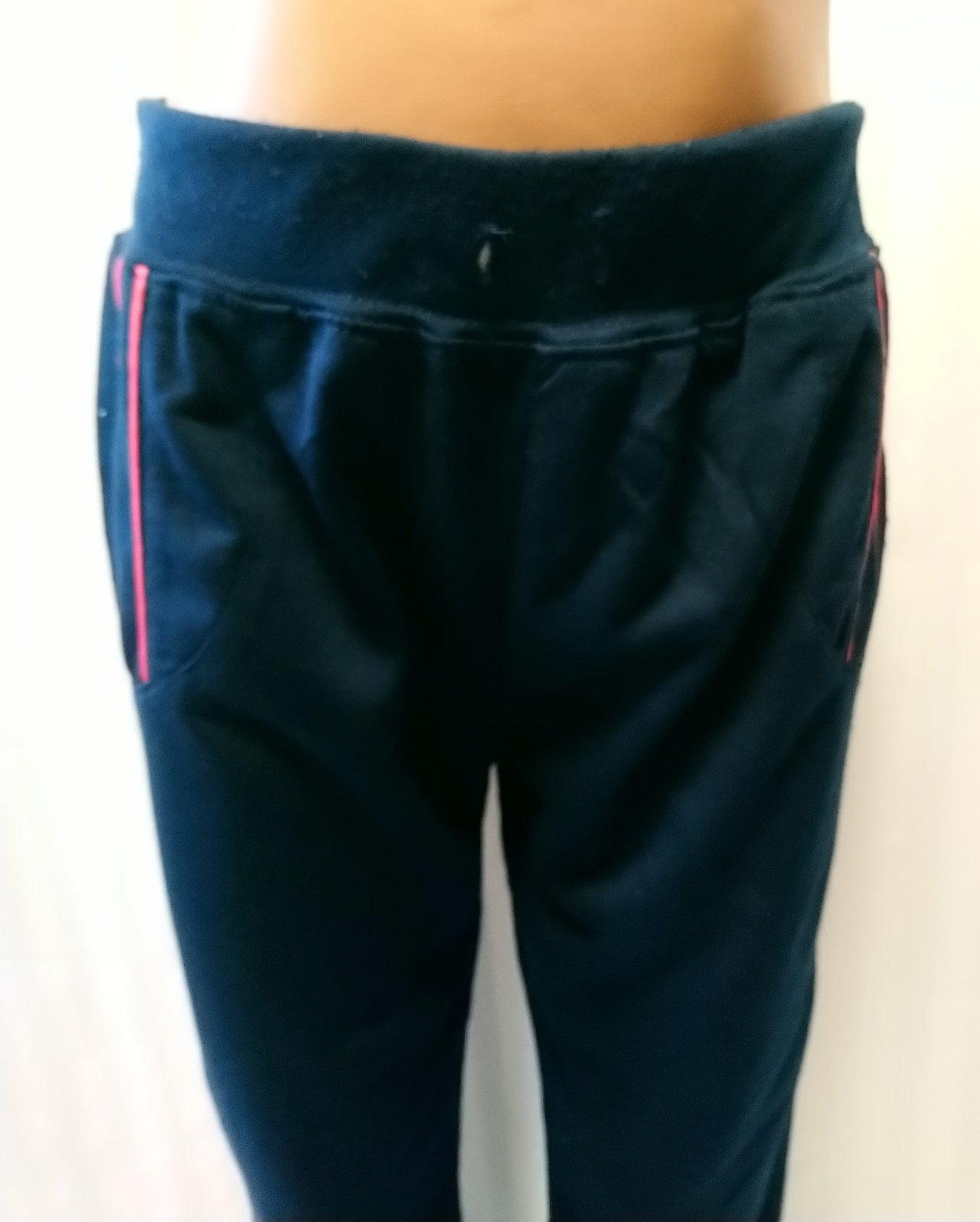 nové dievčenské tmavo modré tepláky v páse na gumu, kontrastné prúžky v hornej časti predného dielu, volný strih, bez vreciek, tenké, vhodné jar až jeseň,