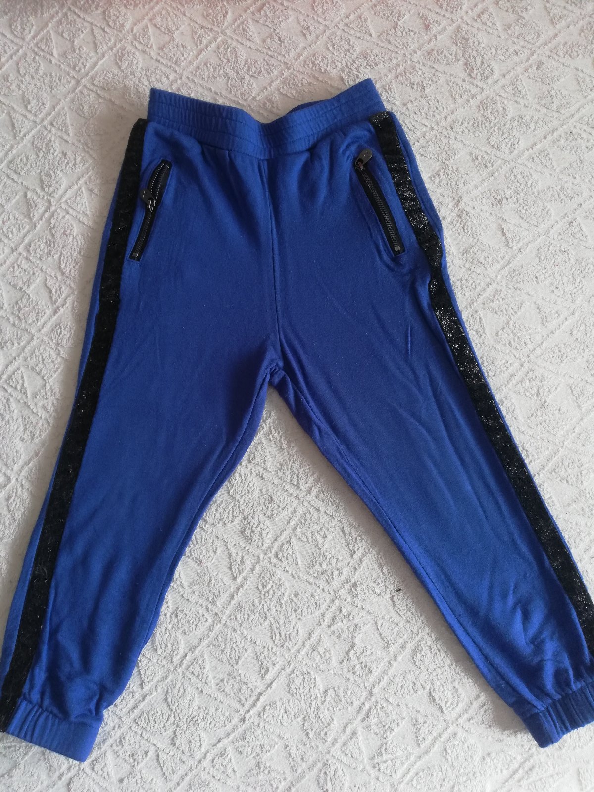tepláky - modré zn. Reserved, č. 110, po bokoch čierny lesklý pás, sivé zateplené č. 110/116. záujem - správa