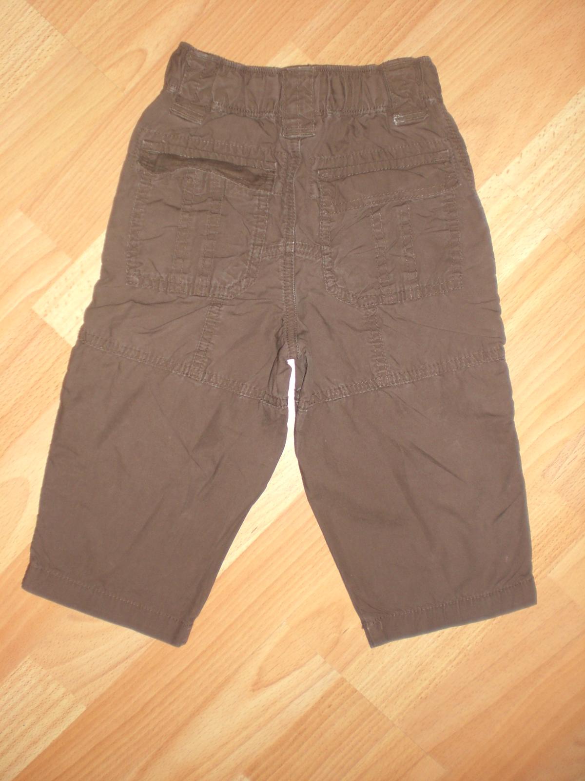 Predám hnedé nohavice, v páse je gumička a sťahovanie na šnúrku. pás v kľude 24 cm. Nohavice sa dajú upraviť na krátke nohavice. Nie sú podšité a preto sú vhodné na teplejšie obdobie. Dĺžka 46 cm, od rozparku 27 cm.
