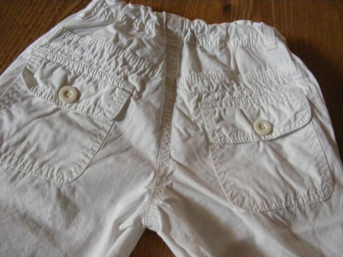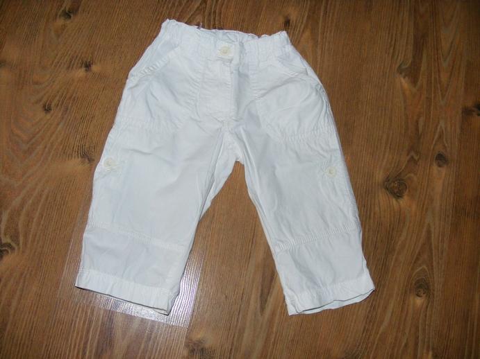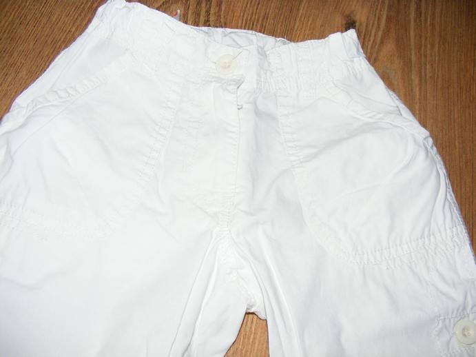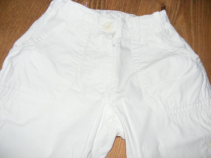 Biele letné nohavice,v peknom stave, málinko nosené.Dlhé sú 46,5 cm,široké v páse 23cm x2, je tam gumka, v bokoch šírka 37,5cm.