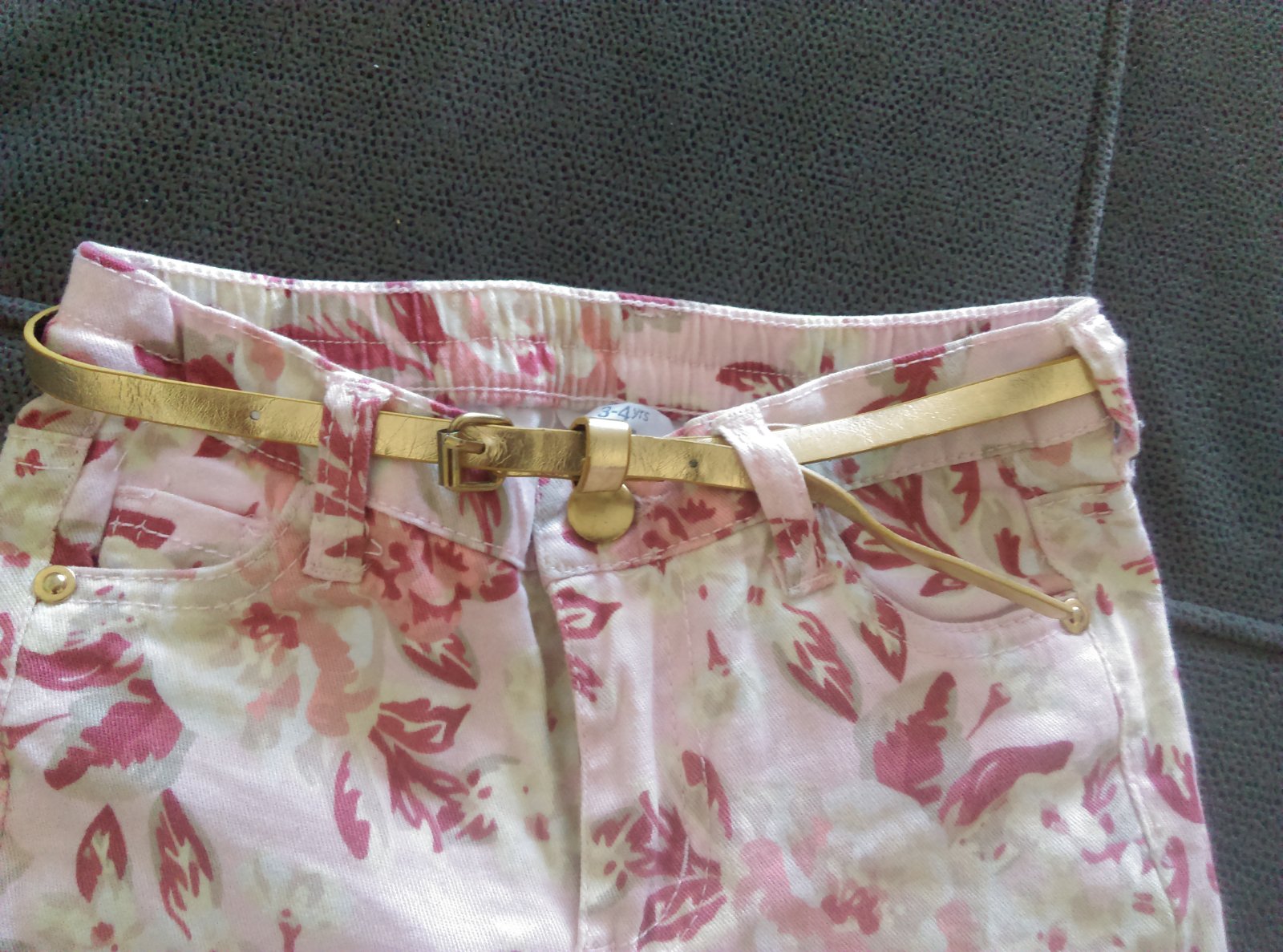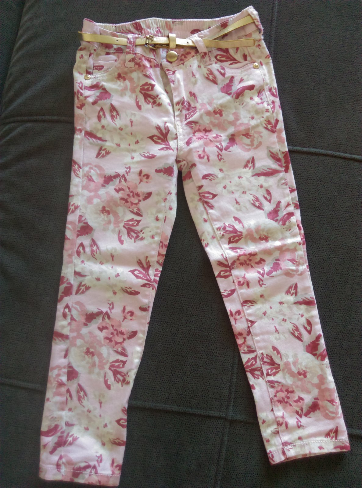 Nohavice so srdiečkami, bez poškodenia, veľkosť 3-4roky, vzadu majú vrecká.V
