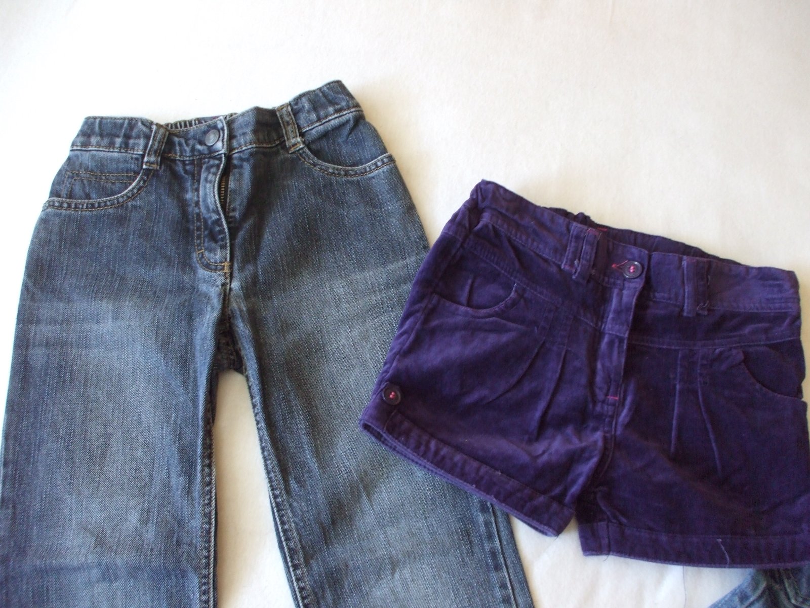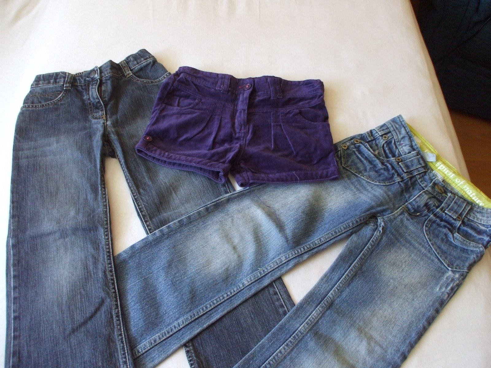 Dva páry menžestrovych nohavíc vo vynikajúcom nosenom stave. Žiadne vady. Celková dlžka 73 cm, šírka v pase 30 x 2 cm, v pase je nastavitelná guma, šírka v bokoch 34 cm. Na vek 7-8 rokov. Jedny su ...
