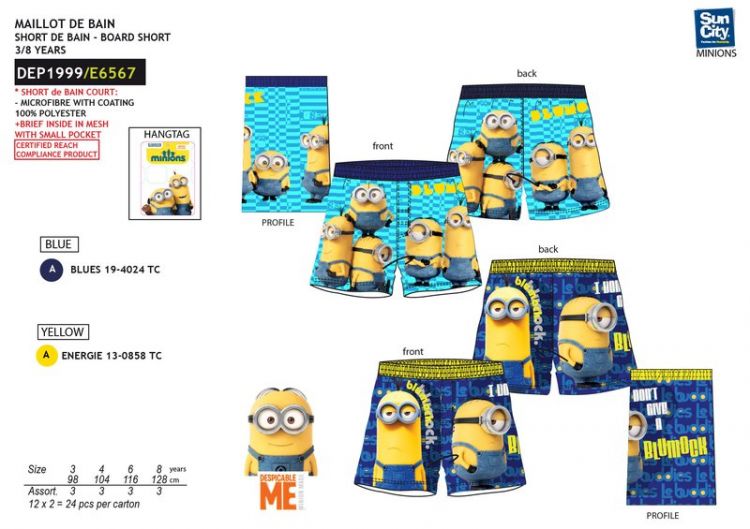 Chlapčenské šortky/plavky Mimoni - 2 motívy.