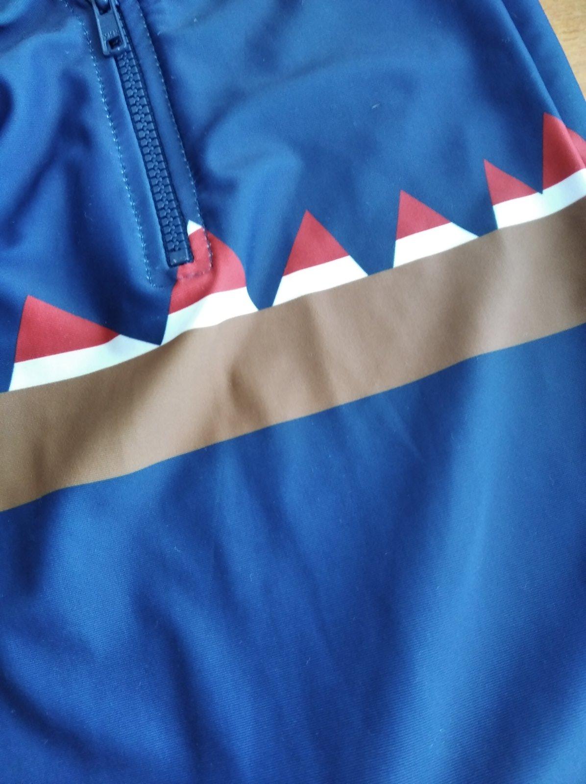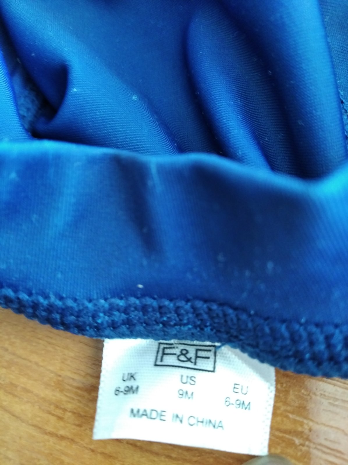 zachovale plavky, bez poskodeni, chrania pred UV ziarenim, s UPF ochranou 50+, vzadu zips, vel.6-9mesiacov, dlzka 49cm sirka 21cmx2, odporucam