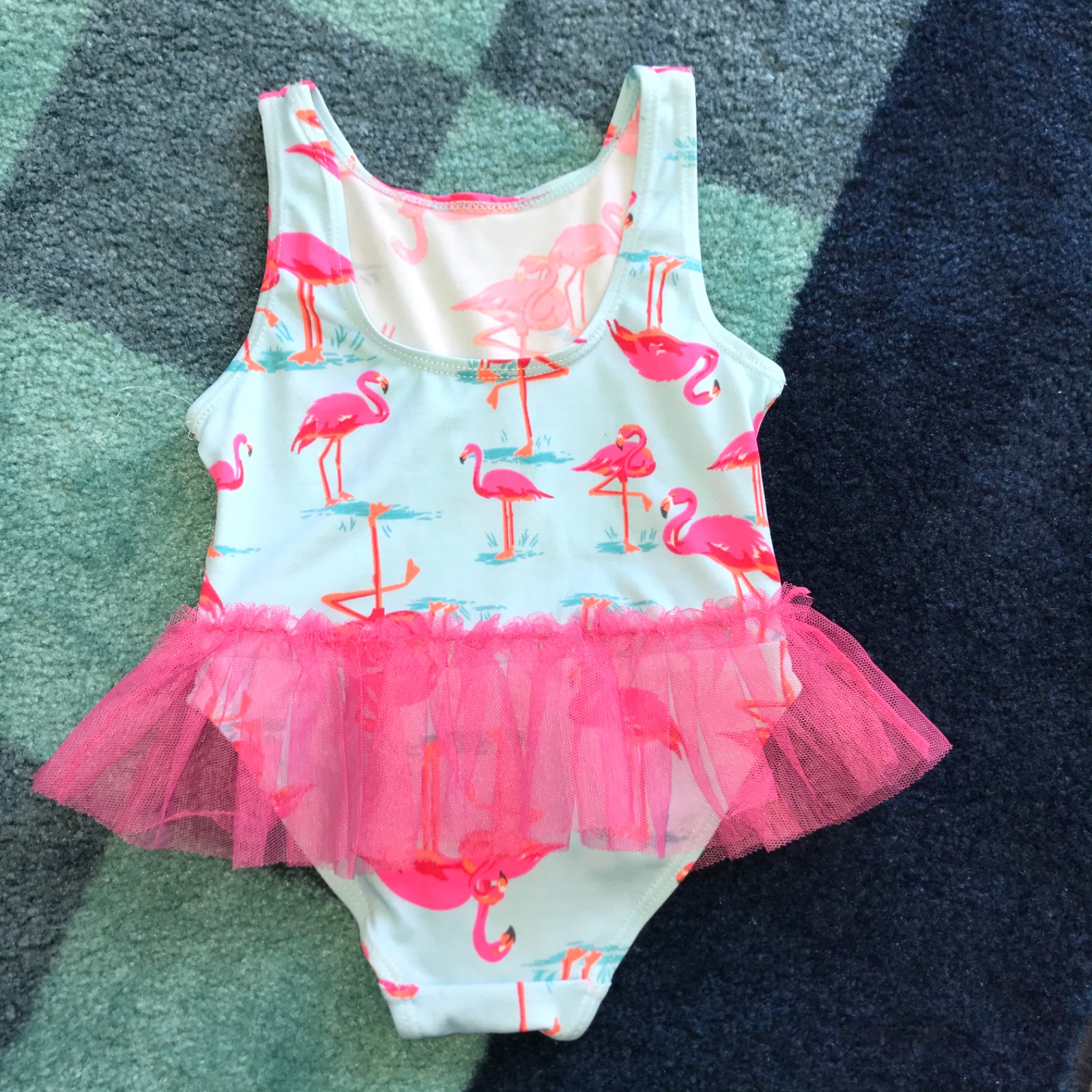 🦩🦩🦩 Predám nádherne plavky s plameniakmi, v páse tylová suknička. Veľ. 9-12 mesiacov.