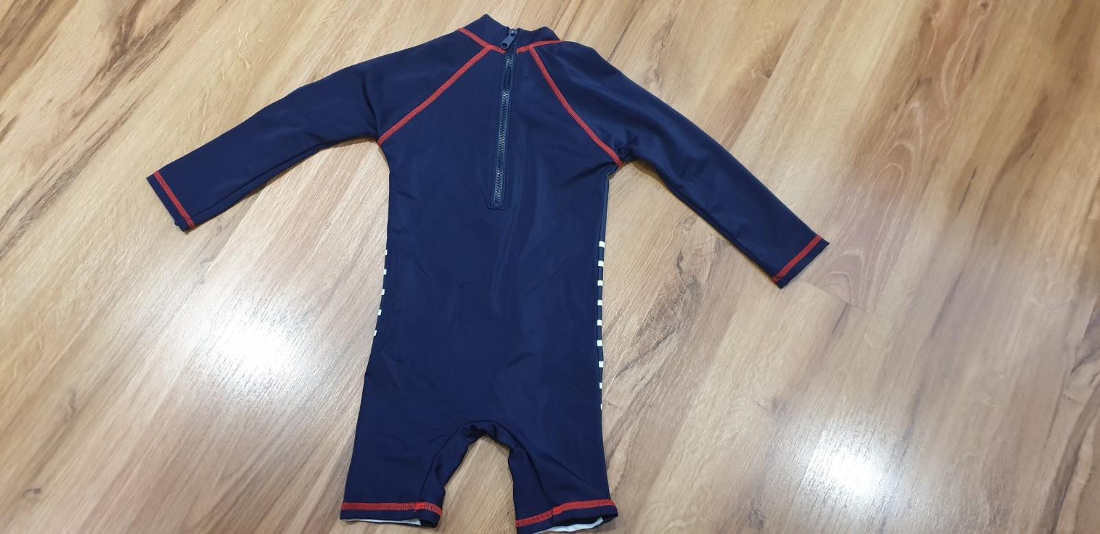 Predam velkost 86 krasne decke plavky tmavomodra biele.pasiky cervena kotva a lemovanie namornicky motiv overal pre chlapceka na kupanie