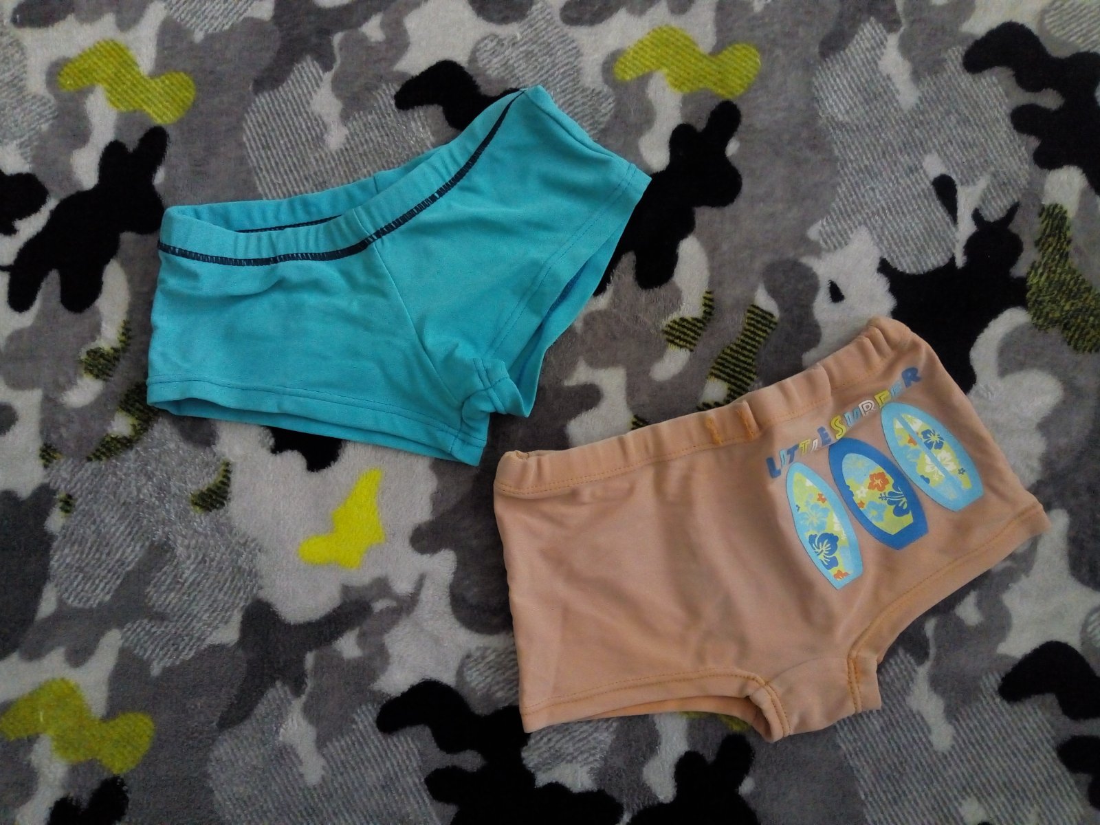 Nosené plavky, gumička slabšie drží.Veľ.92/98.Cena spolu.