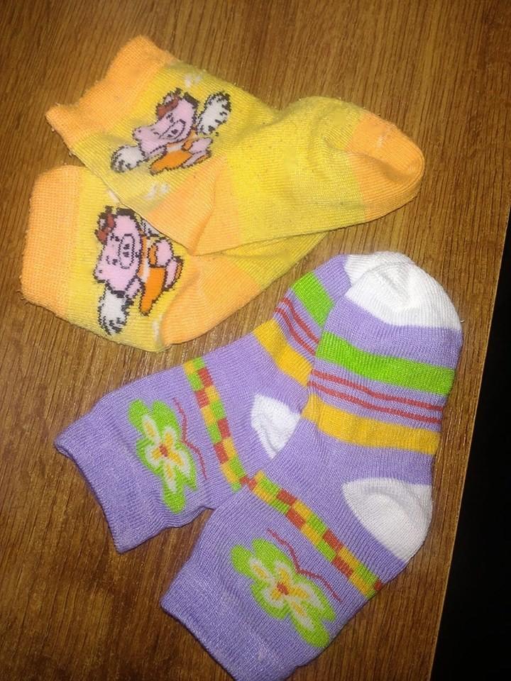 Predám ponožky, číslo je odhadom. dĺžka je 10,5cm...fialové sú nenosené, žlté sme nosili, no nemajú žiadne poškodenia, akurát trošku žmolky. cena je za obe. v prípade záujmu predám aj zvlášť. fialové po 1e a žlté po 0,50e.