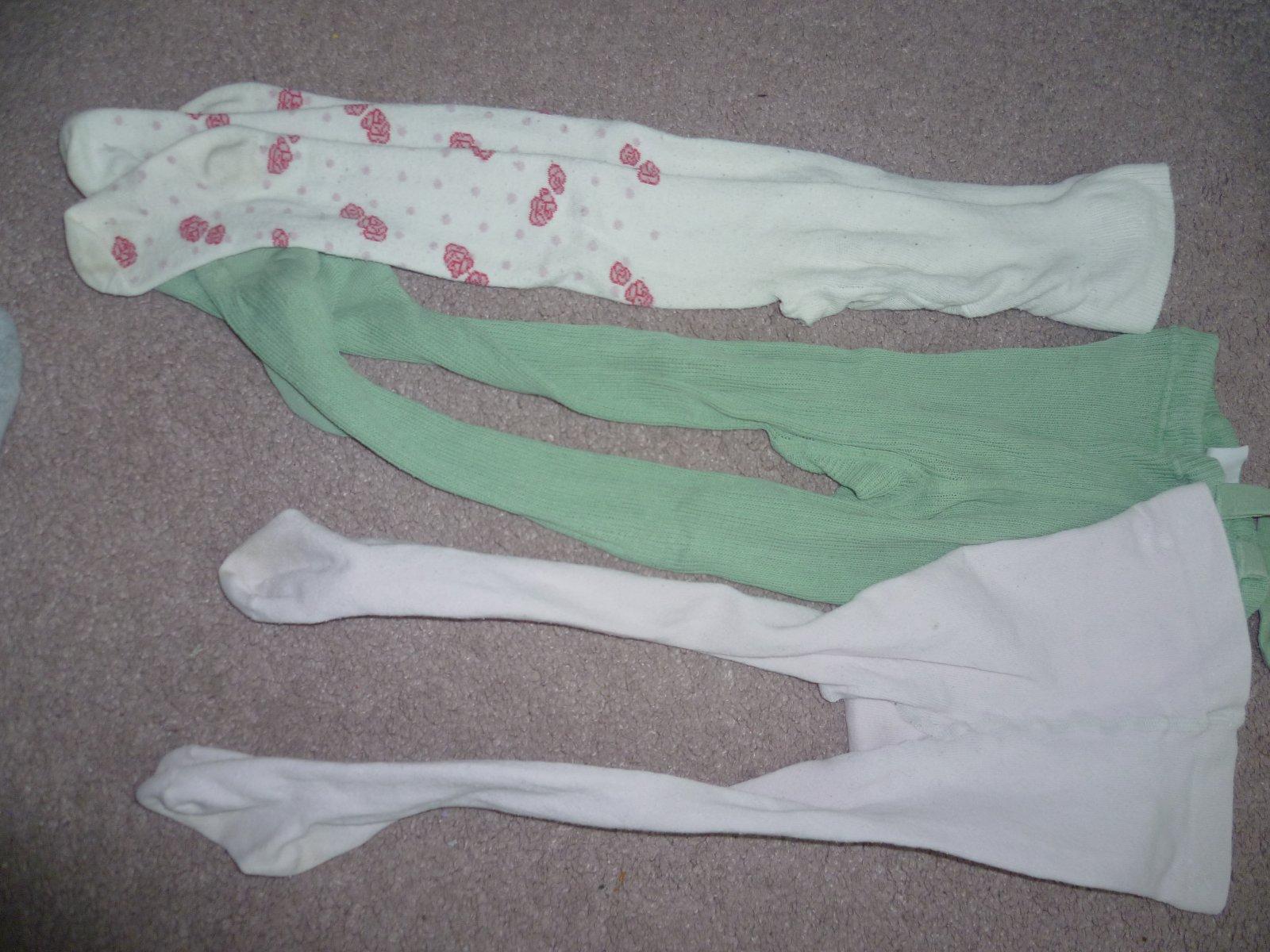 Predám nosené pančuchy, kvietkované veľkosť 74/80 (lidl), zelené 70 (tatrasvit) a biele 6-12 m.