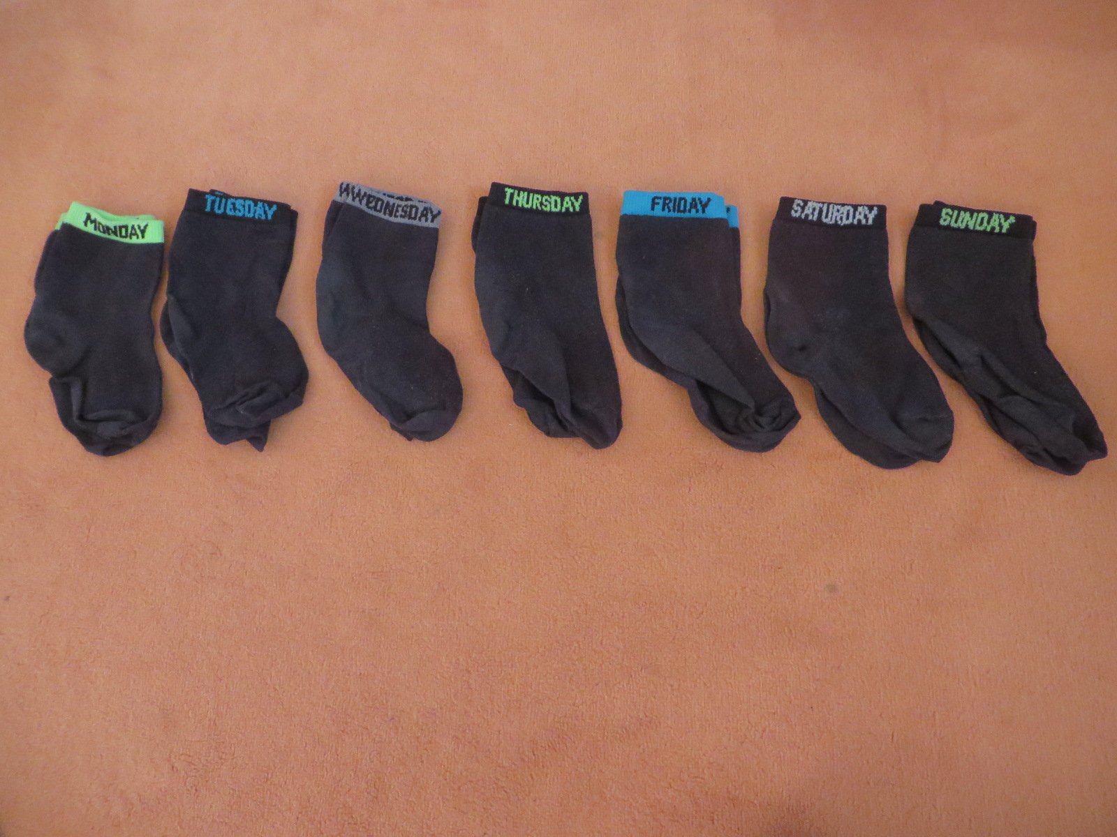 Predám nosené chlapčenské ponožky s dňami, 7 párov. Sú vo veľkosti 27-30. Naučili sme sa s nimi anglické dni.