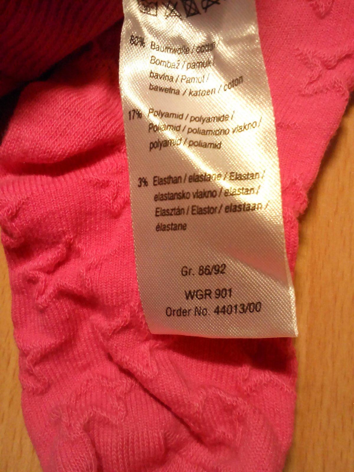 80% bavlna 18% polyamid 2%elastan Rozmery 1-2 - 9-14kg, 80-92cm 3-4 - 15-19kg, 93-105cm 5-6 - 20-25kg, 106-118cm 7-8 - 26-31kg, 119-131cm 9-10-32-38kg, 132-144cm Cena plus posta