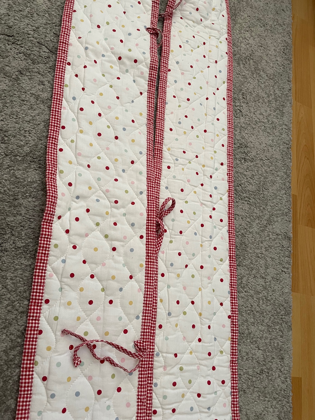 Ponúkam na predaj mantinel do detskej postieľky. Biely (skôr taká smotanová, nie snehobiela) má dĺžku 390 cm, výšku 20 cm. K postieľke sa pripevňuje jednoducho pomocou šnúrok. Cena 3 eurá + poštovné