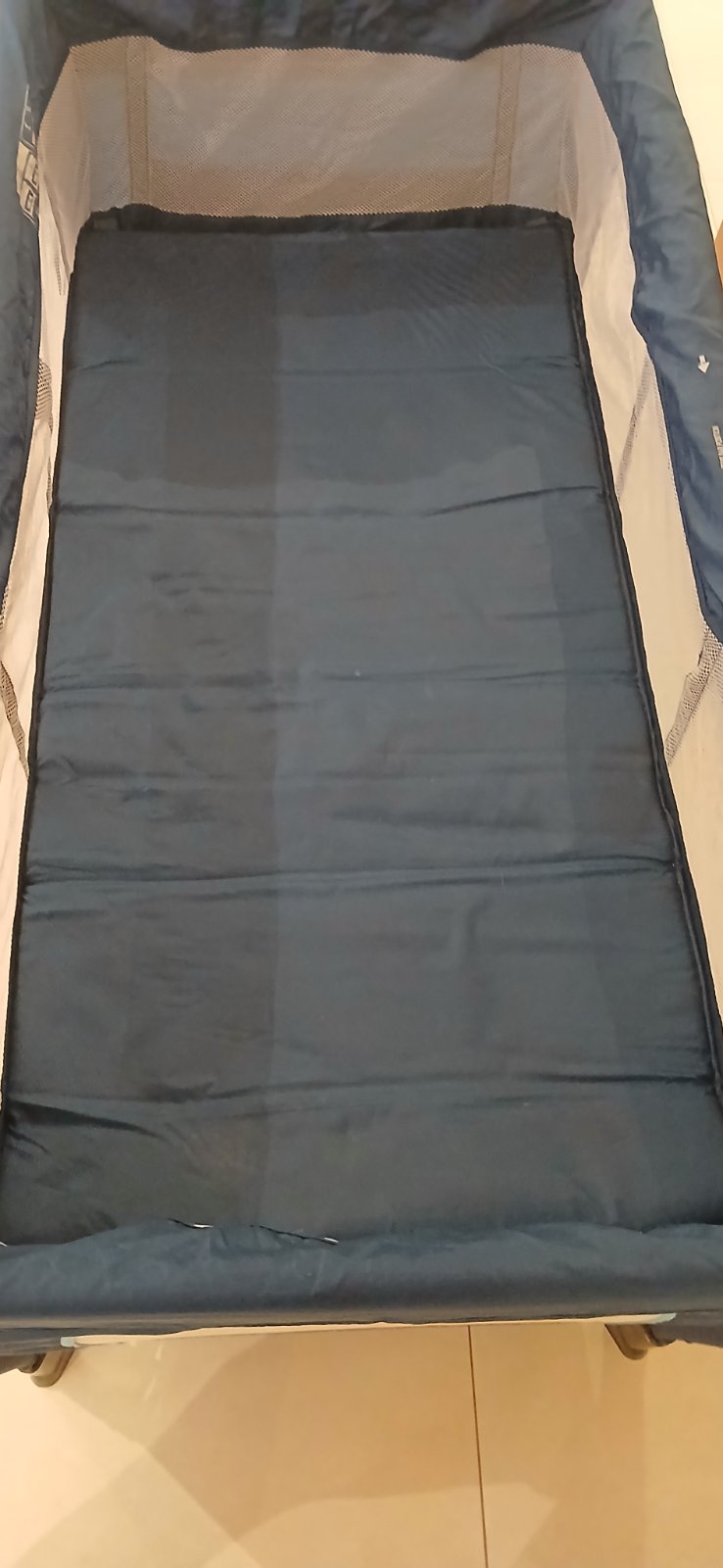 Detska cestovna postielka v praktickej taske s moznostou dvoch poloh na spanie (vyssia pre novorodenca,maminka sa nezohyňa, nizsia pre vacsie dieta). Mierne znamky pouzivania, ktore nemenia funkcnost (vid foto), zohladnene v cene.