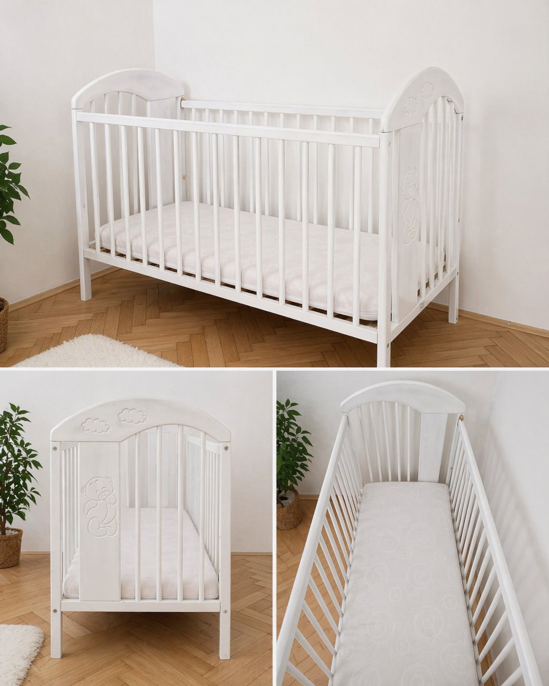 Predám krásnu detskú postieľku v bielej farbe. Postieľka je zachovalá, stabilná a plne funkčná. Má jednoduchý a čistý dizajn, ktorý sa hodí do každej detskej izby.