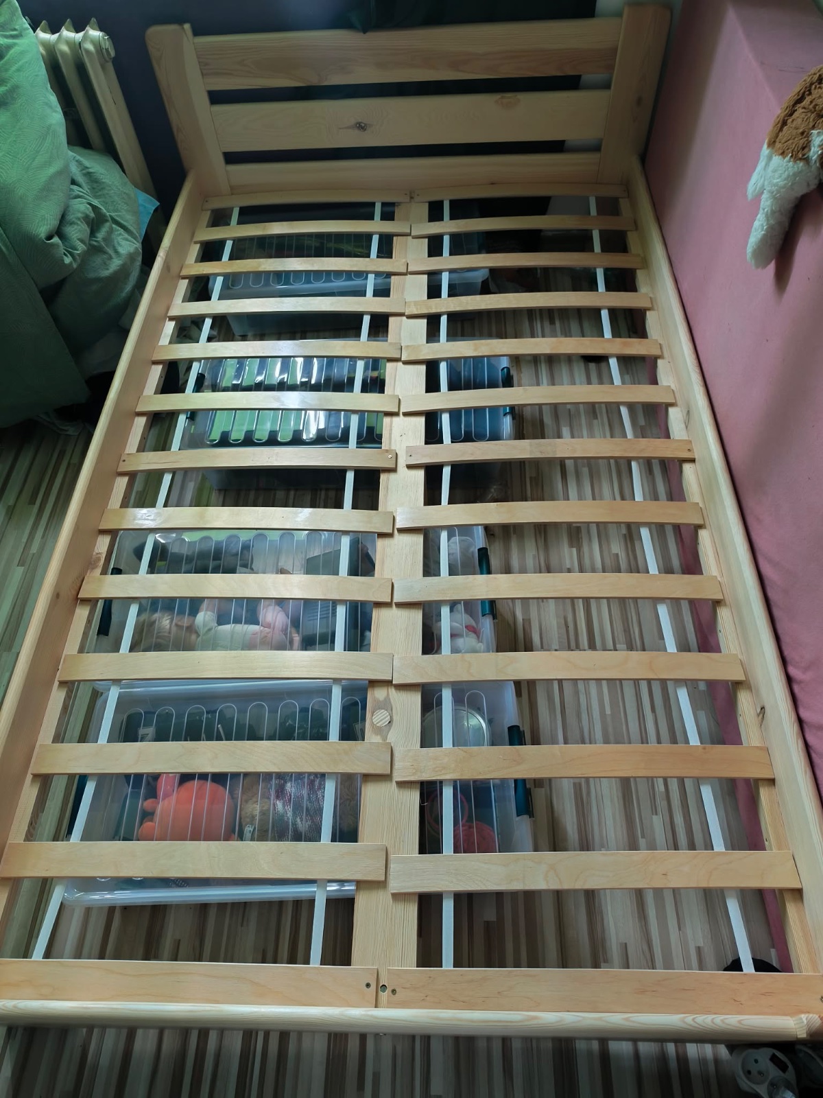 Zachovalá postel, používana tak dva roky sem tam na prespatie. Sú k tomu aj rošty. Priestor je pod postelou aj na úložné boxy ako sme to mali my.