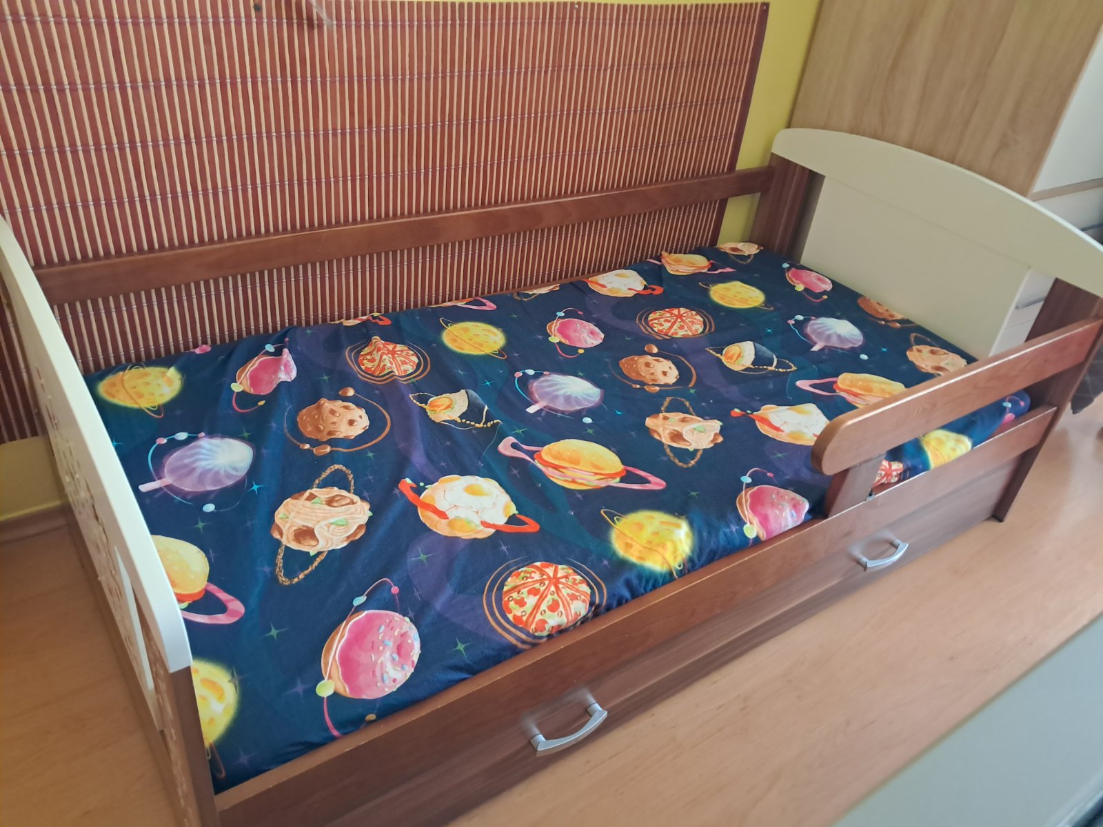 Predáme používanú detskú posteľ 160x80 pre 2 deti/s výsuvnou prístelkou + možnosť bočnej zábrany (na druhej foto je trocha viditeľná, skoro sme ju ale odmontovali a nepoužívali).