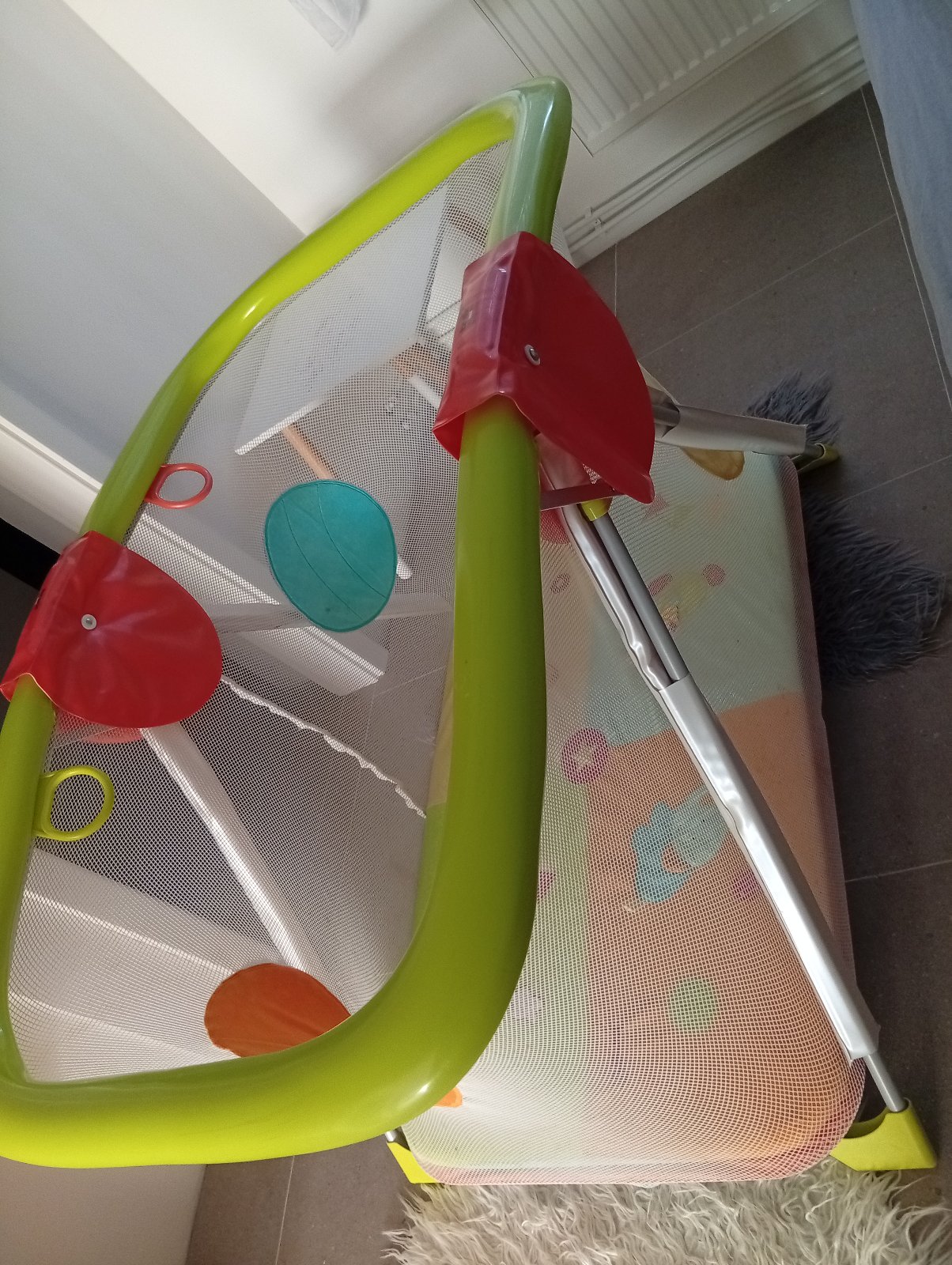 Velmi stabilna ohradka so 4 uchytmi na hracky, pouzivana velmi malo len skladovana u babky , na nozickach obcas skrabanceky male , pc 80 eur osobny odber v Nitre
