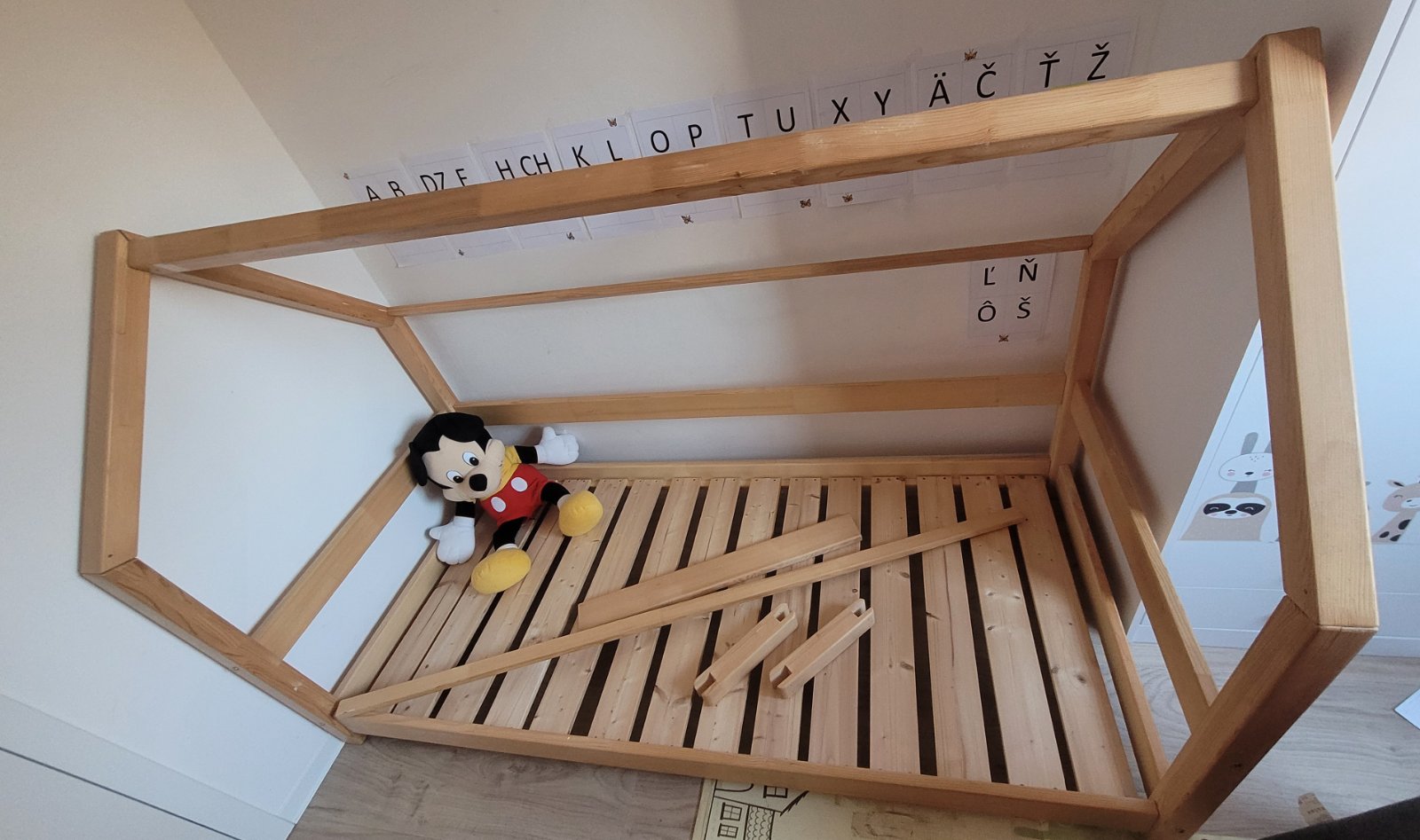 Predam kvalitnu drevenu postel bez matraca, darujem velkeho mickeyho