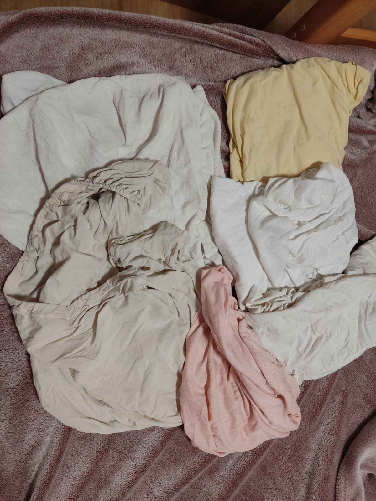 Hniezdo do postielky, navlecky na vankusik a paplonik, neboli pouzite ani oprane, pridam k nim este nepremokavu plachtu na madrac.